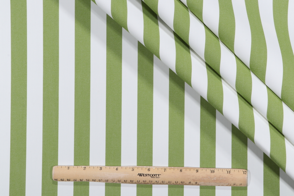 If you order a sample of SunReal Patio Stripe Woven Solution Dyed Acrylic Outdoor Fabric in Lime the size of the swatch you receive will be approximately 4" x 6". This is enough fabric to verify color and texture, but may not be large enough to capture an entire pattern.