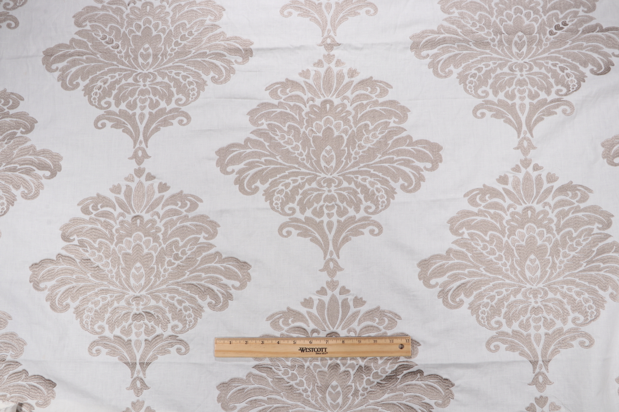 1.25 Yards Thibaut Arturo Damask W713017 Embroidered Drapery Fabric in Grey on White Details