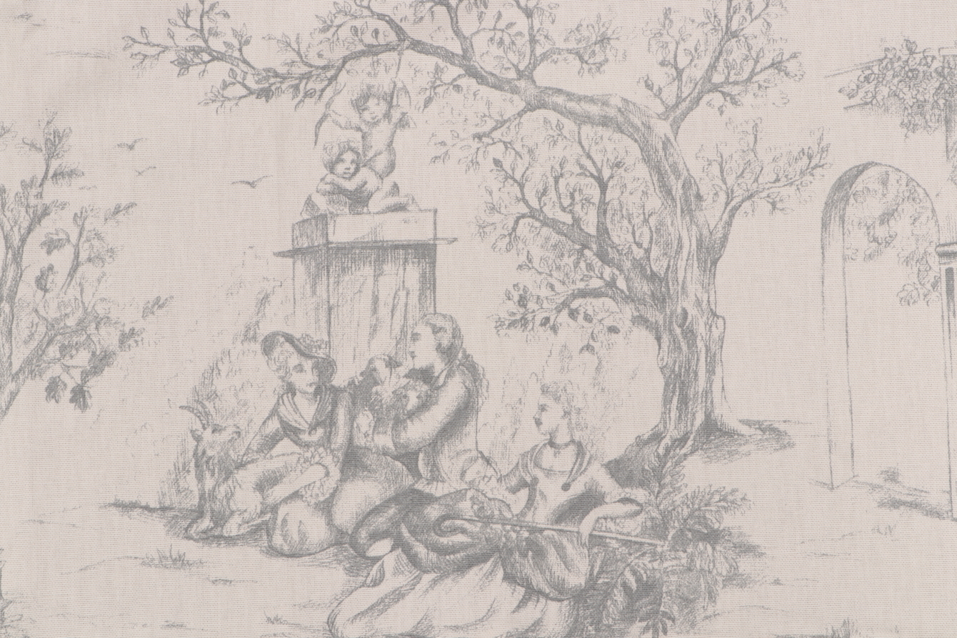 Stof France Galanterie Toile Printed Cotton Drapery Fabric in Gris Details