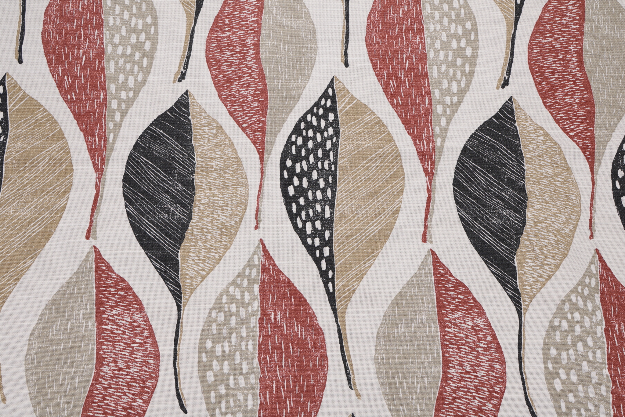 Robert Allen Woodblock Leaf Printed Cotton Drapery Fabric in Henna is a remnant. Fabric remnants refer to leftover pieces of fabric from production runs at manufacturing sites or pieces that remain from by the yard stock. The lengths of these remnants can vary from a few inches to several yards and are typically sold at a reduced price, since they represent remaining inventory.
