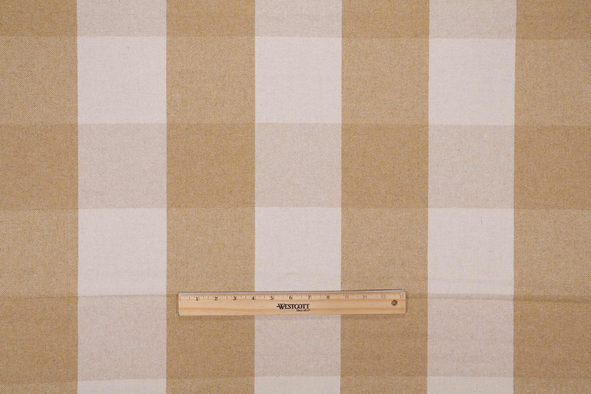 Robert Allen Pecore Plaid Woven Wool Blend Upholstery Fabric in Brass is a remnant, which is sold as a whole piece.