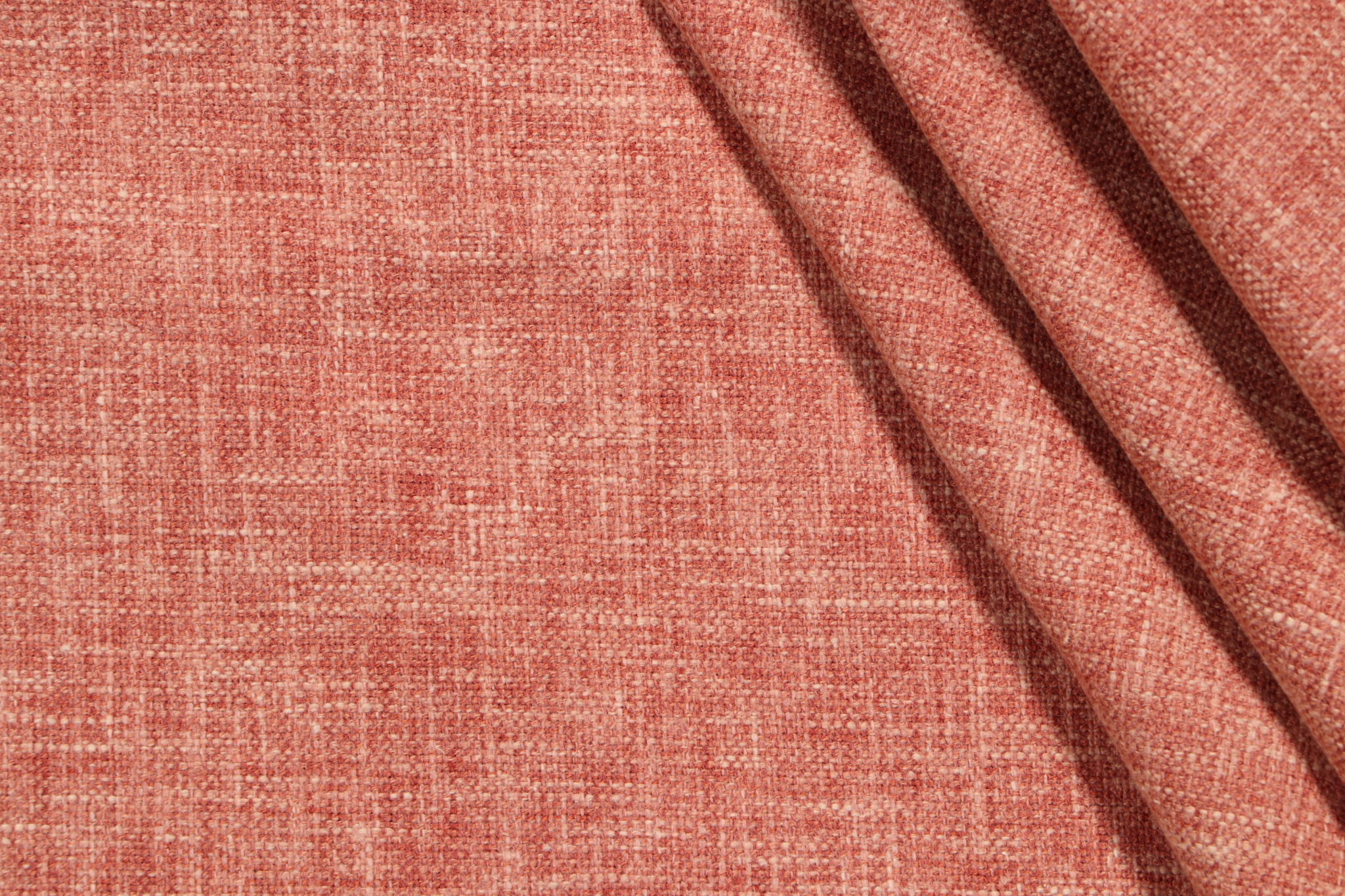 Brentwood Performance Woven Upholstery Fabric in Coral is a remnant. Fabric remnants refer to leftover pieces of fabric from production runs at manufacturing sites or pieces that remain from by the yard stock. The lengths of these remnants can vary from a few inches to several yards and are typically sold at a reduced price, since they represent remaining inventory.
