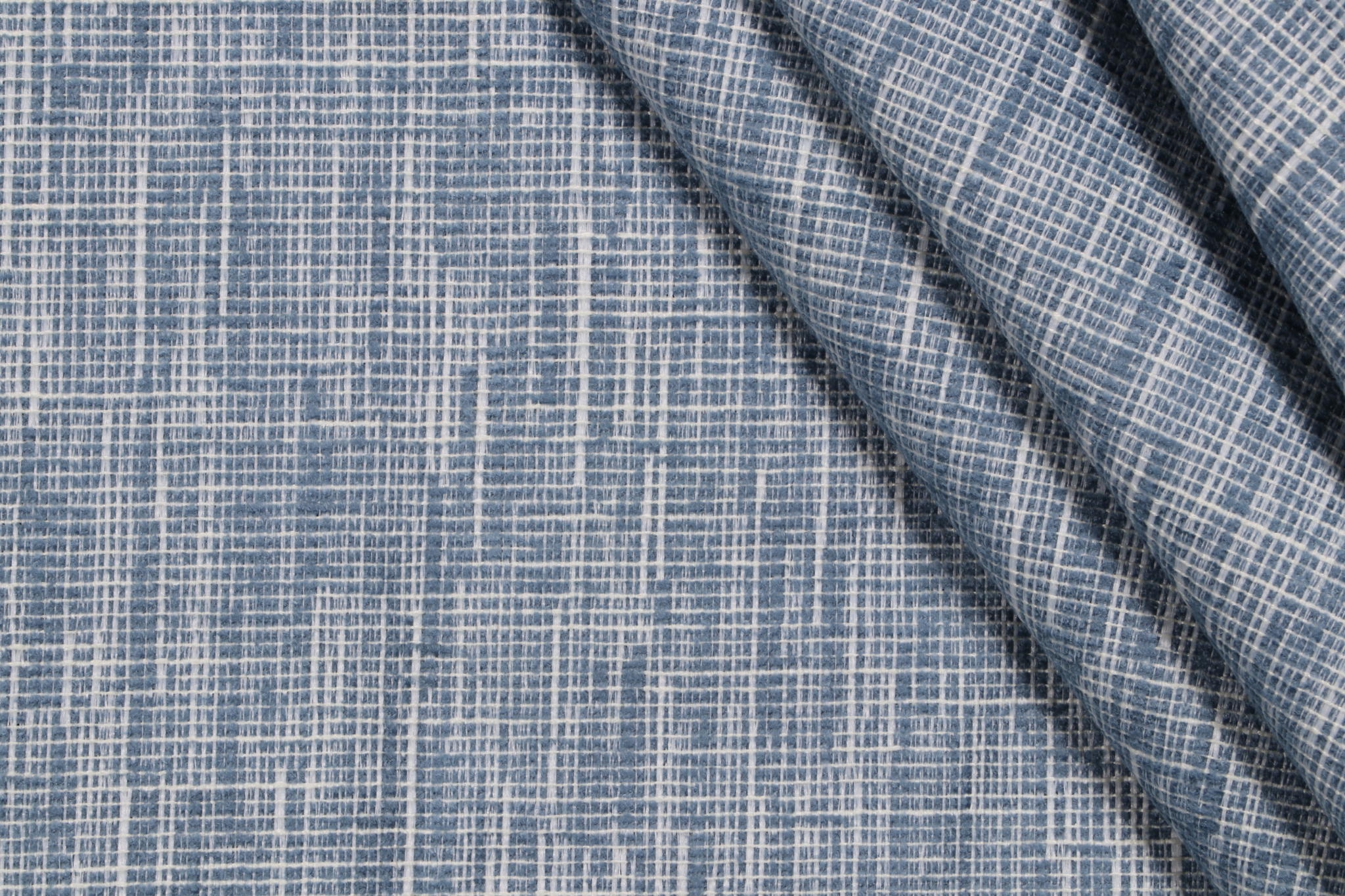 Valdese Weavers Pretty Much Woven Crypton Home Finish Chenille Upholstery Fabric in Chambray is a remnant, which is sold as a whole piece.
