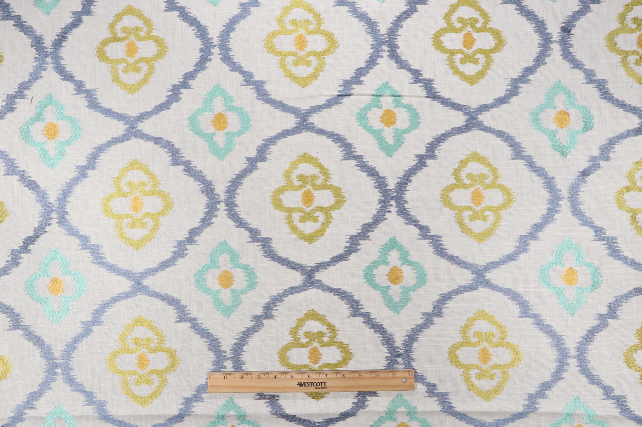1 Yards Covington Sumatra Embroidered Drapery Fabric in 52-Cabana Blue Details