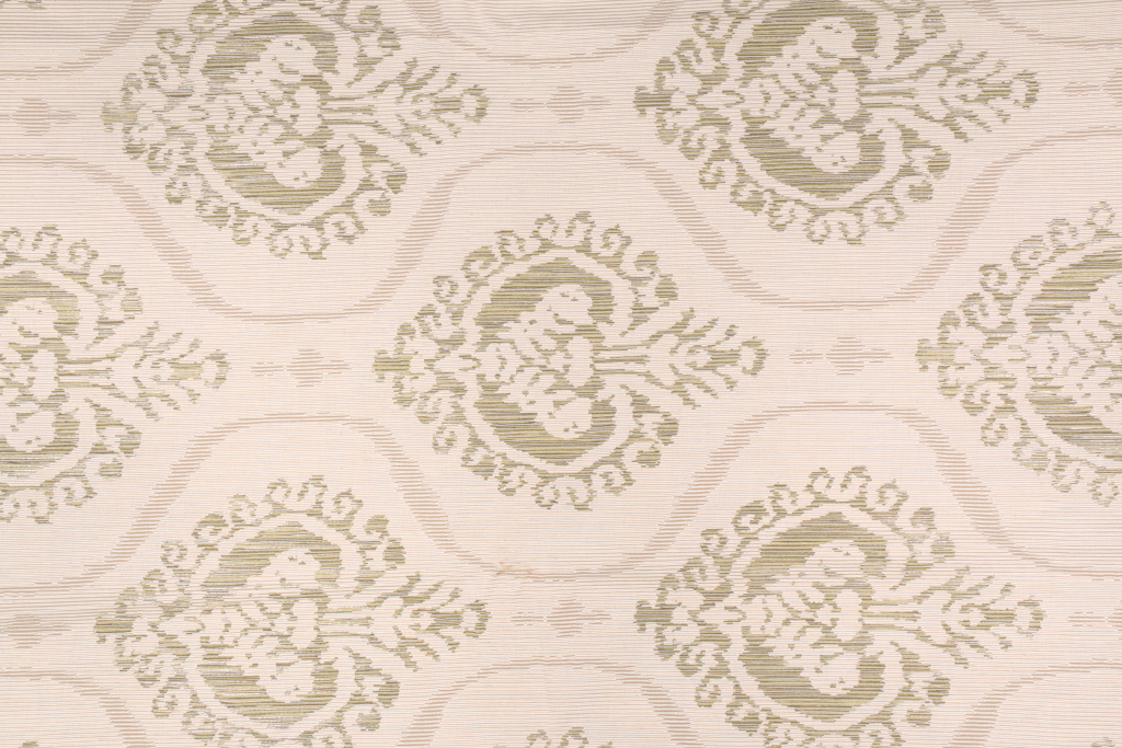 Damask Upholstery Fabric in Ivory/Green is a remnant, which is sold as a whole piece.