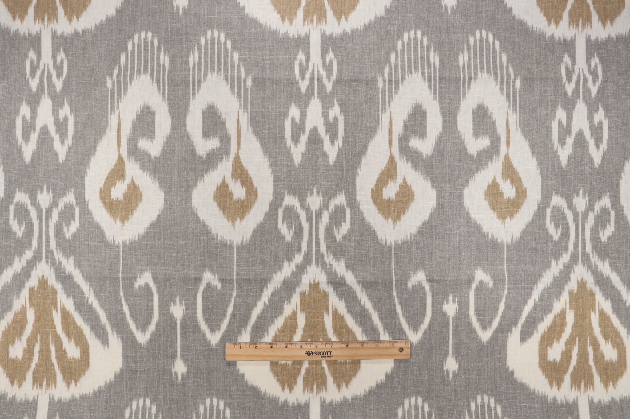 Available now: 2.25 yards of Echo Bansuri, a premium printed linen drapery fabric in by Kravet. This fabric is suitable for short curtains, decorative tiebacks, or smaller window treatments. Note: If you are unsure about the suitability of this fabric for your specific use case please contact us prior to ordering.