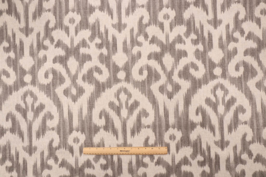 1.75 Yards P Kaufmann Tonal Ikat Printed Linen Blend Drapery Fabric in Smoke Details