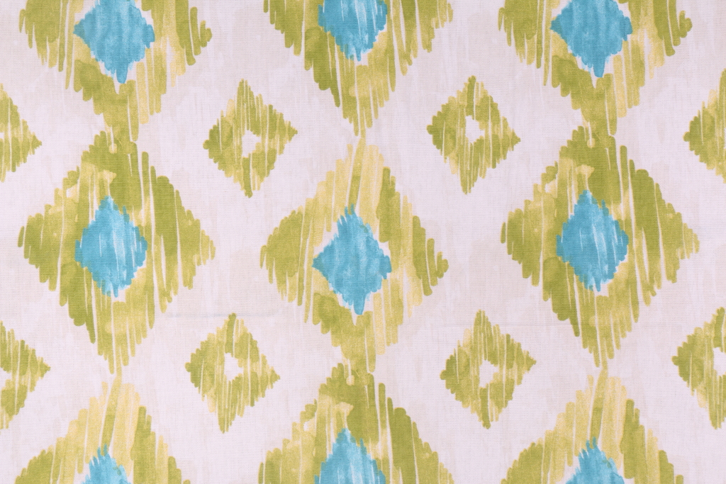 5.1 Yards Richloom Diamond Ikat Printed Cotton Drapery Fabric. This printed fabric is perfect for window treatments, decorative pillows, handbags, light duty upholstery applications and almost any craft project. This fabric has a soft workable feel yet is stable and durable.