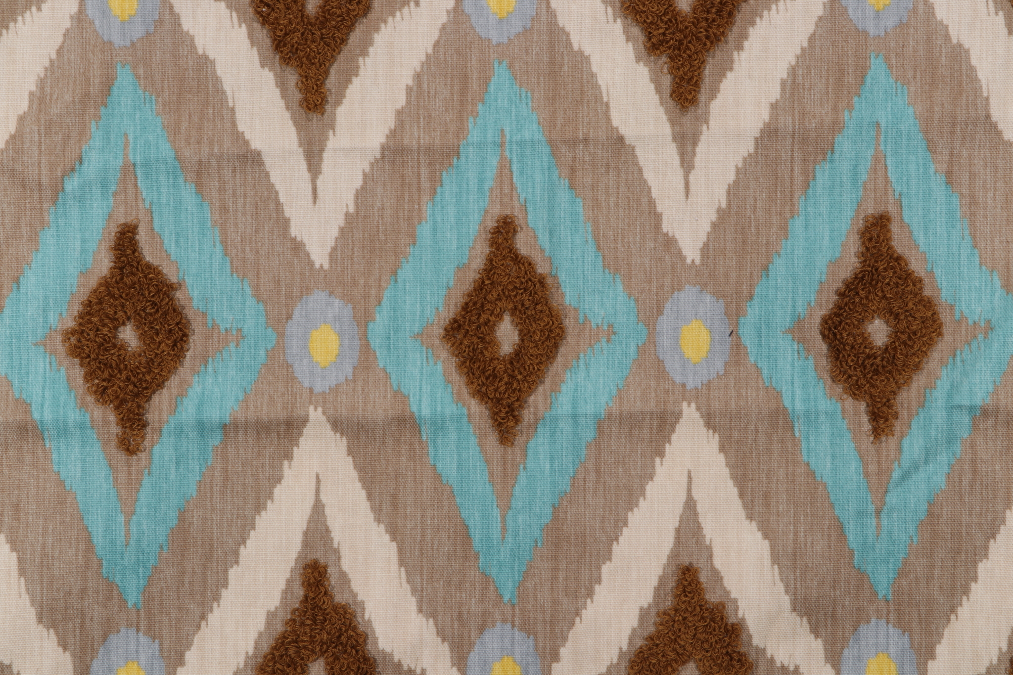 1.5 Yards Robert Allen Modern Ikat Printed & Embroidered Drapery Fabric in Pool Details