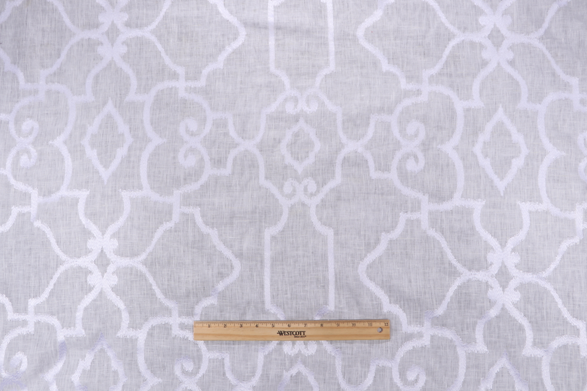 Thibaut Ogden W714211 Embroidered Linen Drapery Fabric in White on White is a remnant, which is sold as a whole piece.