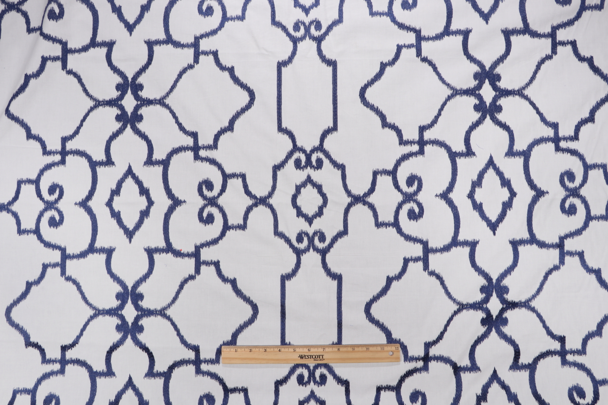 Thibaut Ogden W714212 Embroidered Cotton Drapery Fabric in Blue is a remnant, which is sold as a whole piece.