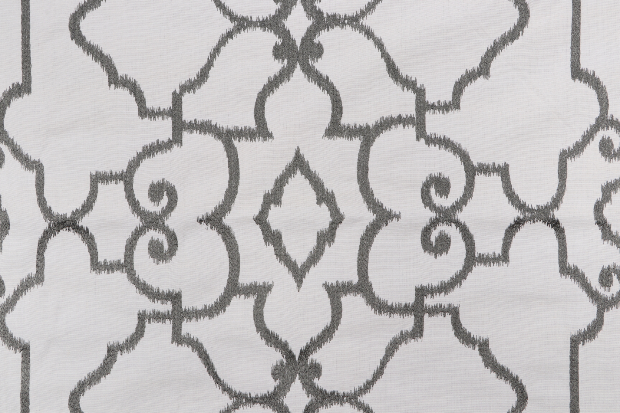 Thibaut Ogden W714213 Embroidered Cotton Drapery Fabric in Dark Grey is a remnant, which is sold as a whole piece.