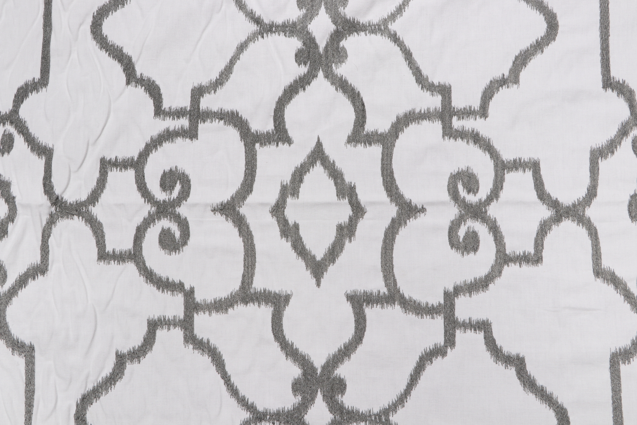 Thibaut Ogden W714213 Embroidered Cotton Drapery Fabric in Dark Grey is a remnant, which is sold as a whole piece.