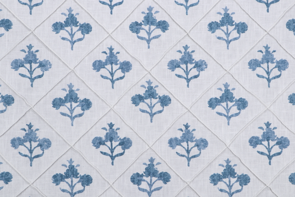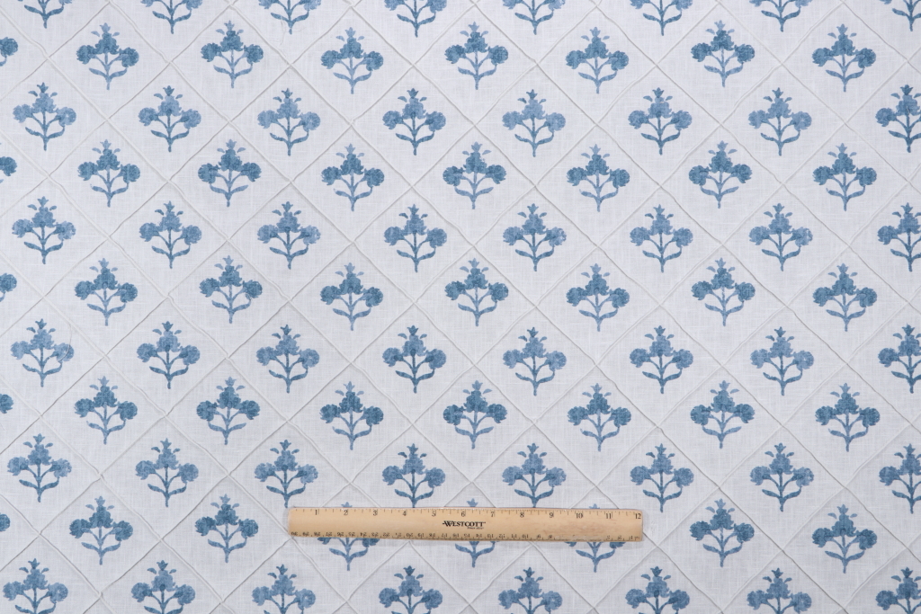 P Kaufmann Trois Fleurs Printed Pintuck Drapery Fabric in Indigo Details