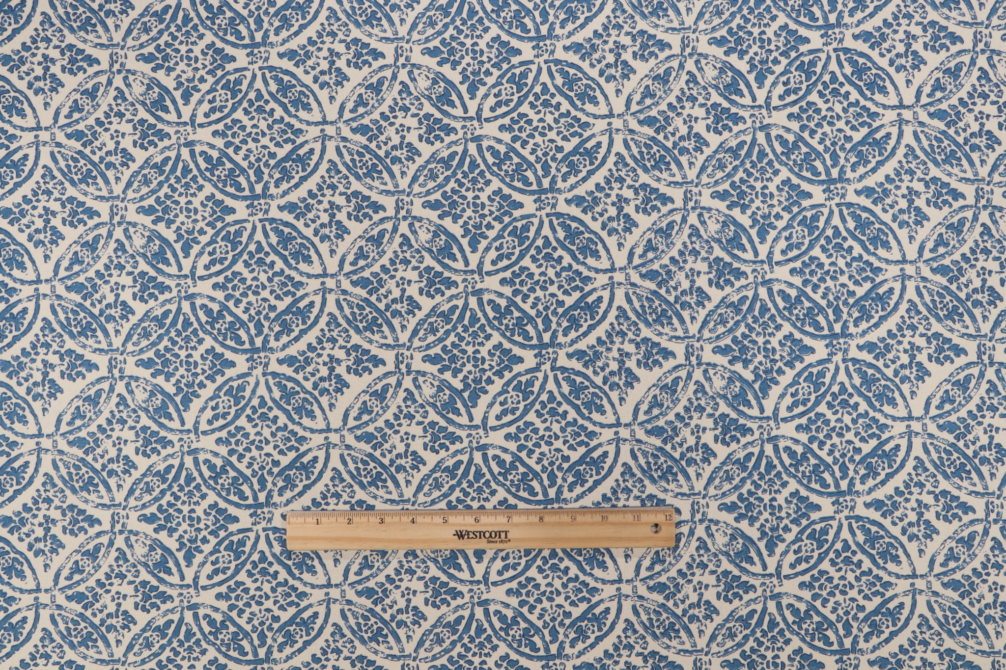 Laura & Kiran Mandala Printed Cotton Drapery Fabric in Indigo Details