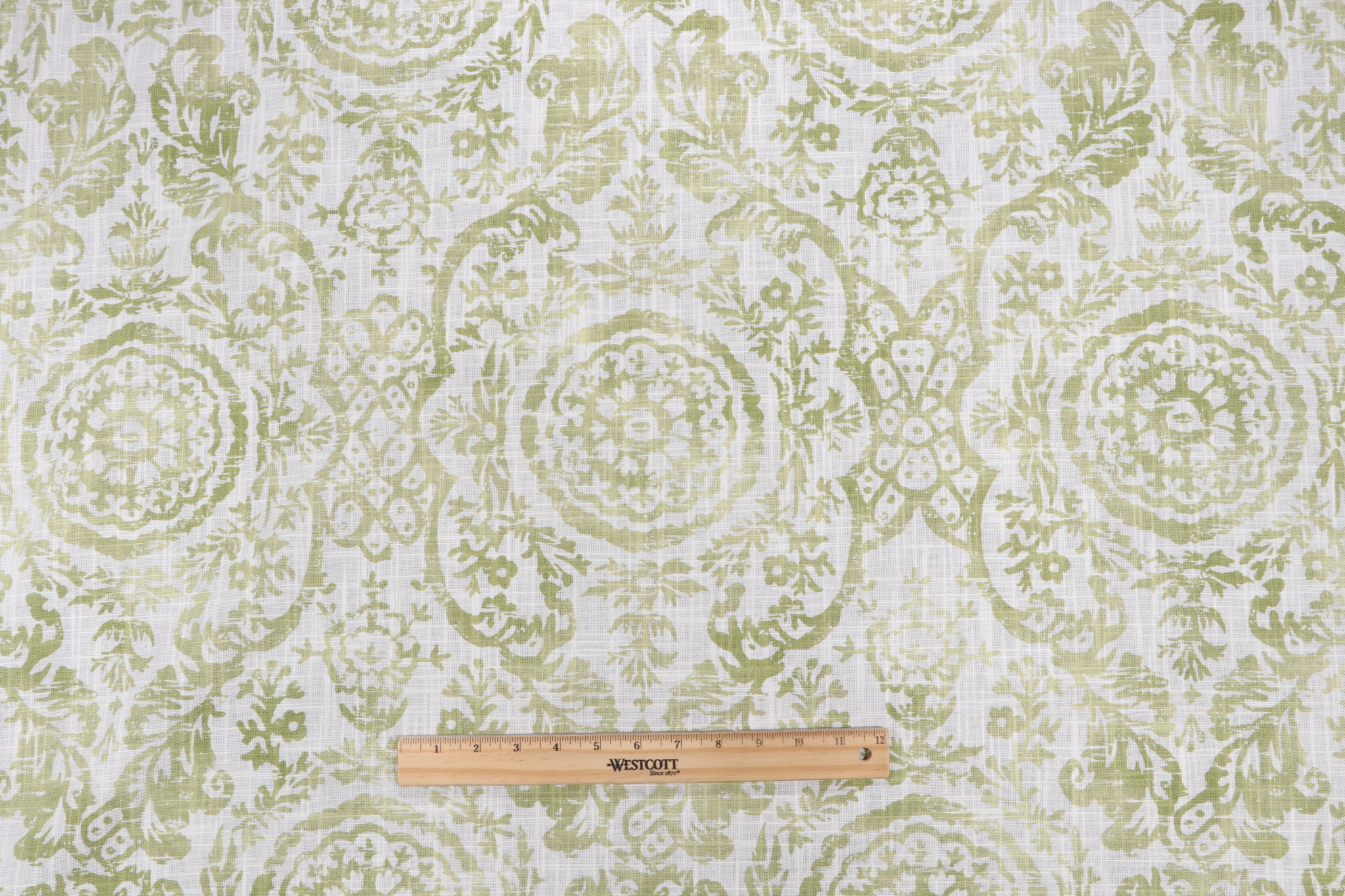 Anna French Sansome F94154 Printed Linen Blend Drapery Fabric in Lime for Thibaut is a remnant. Fabric remnants refer to leftover pieces of fabric from production runs at manufacturing sites or pieces that remain from by the yard stock. The lengths of these remnants can vary from a few inches to several yards and are typically sold at a reduced price, since they represent remaining inventory.