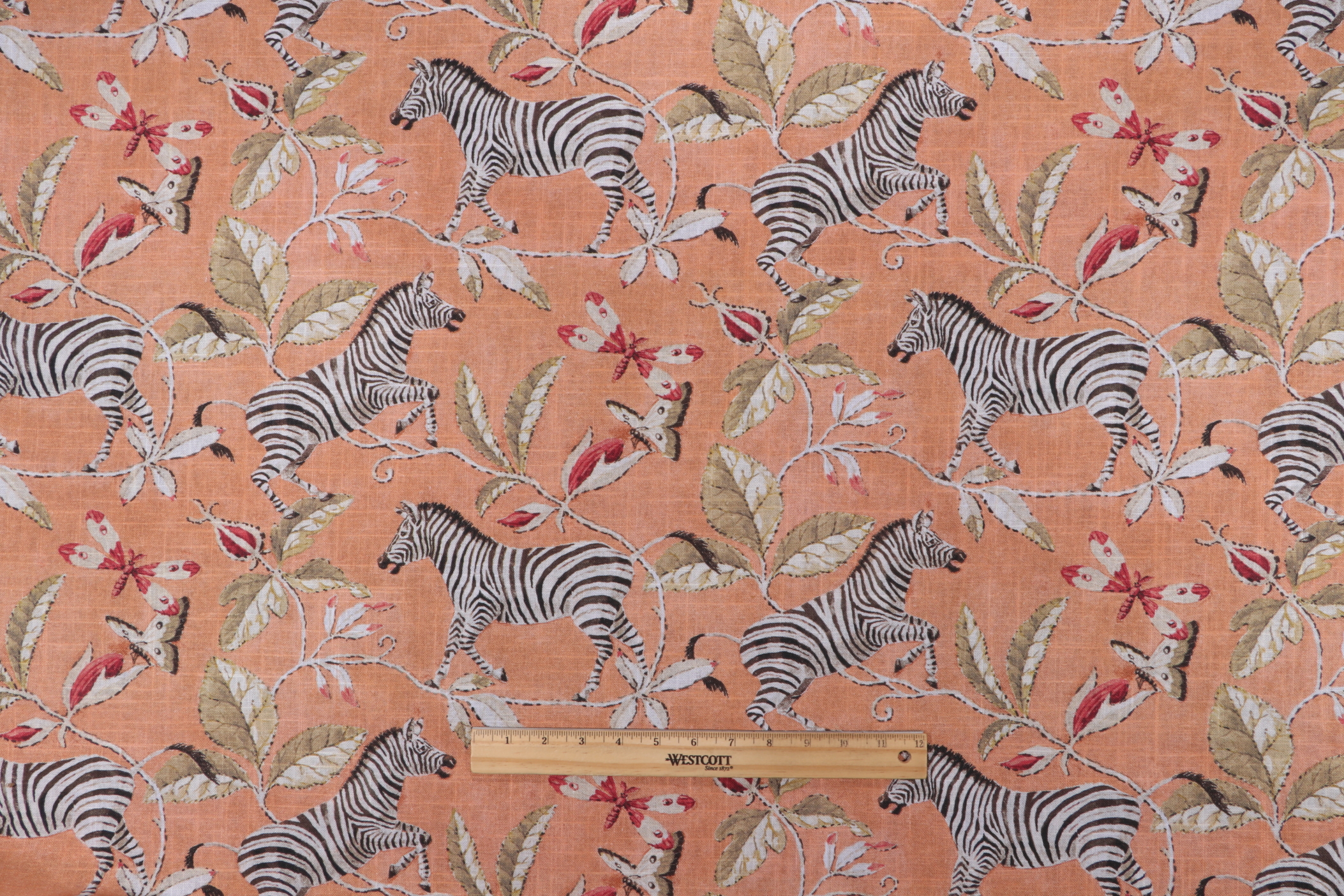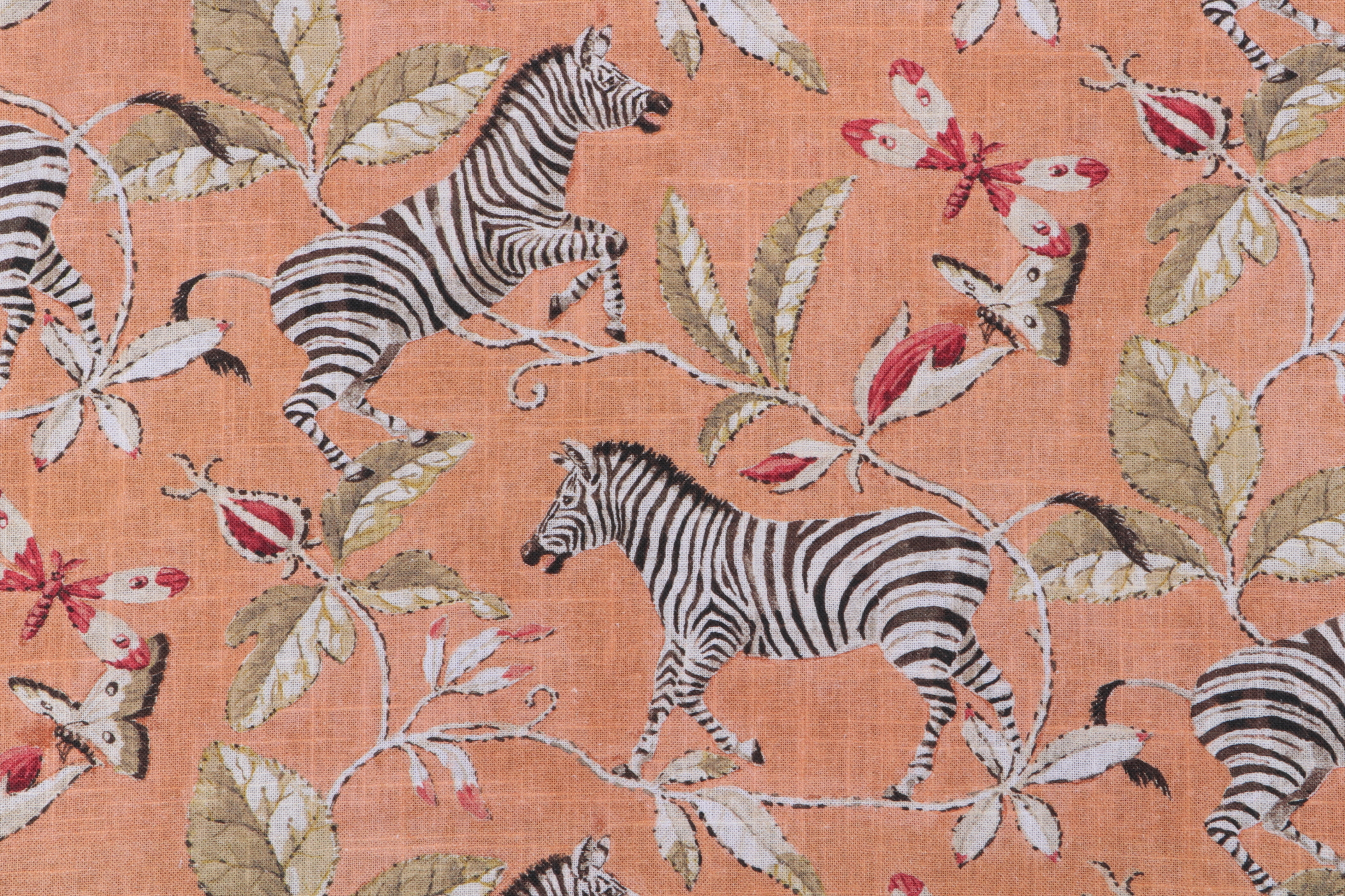 Harrison Howard Zebra's Garden Printed Linen Blend Drapery Fabric in Mango Details