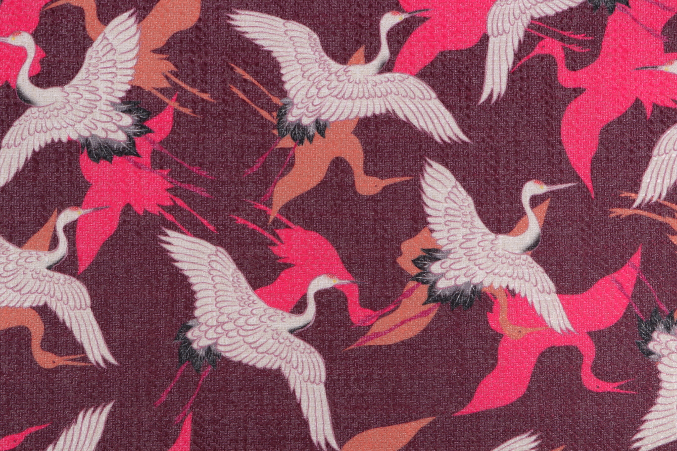 Here we have 4.38 yards of Tsuru, a beautifully crafted printed upholstery fabric. With its rich, opulent hues of wine, silver, indian red, dark gray, and crimson, this fabric exudes elegance. This premium textile brings sophistication and quality to your high-end design projects. Ideal for small projects such as decorative pillows, cushion covers, handbags, or fabric trays. Note: If you are unsure about the suitability of this fabric for your specific use case please contact us prior to ordering.