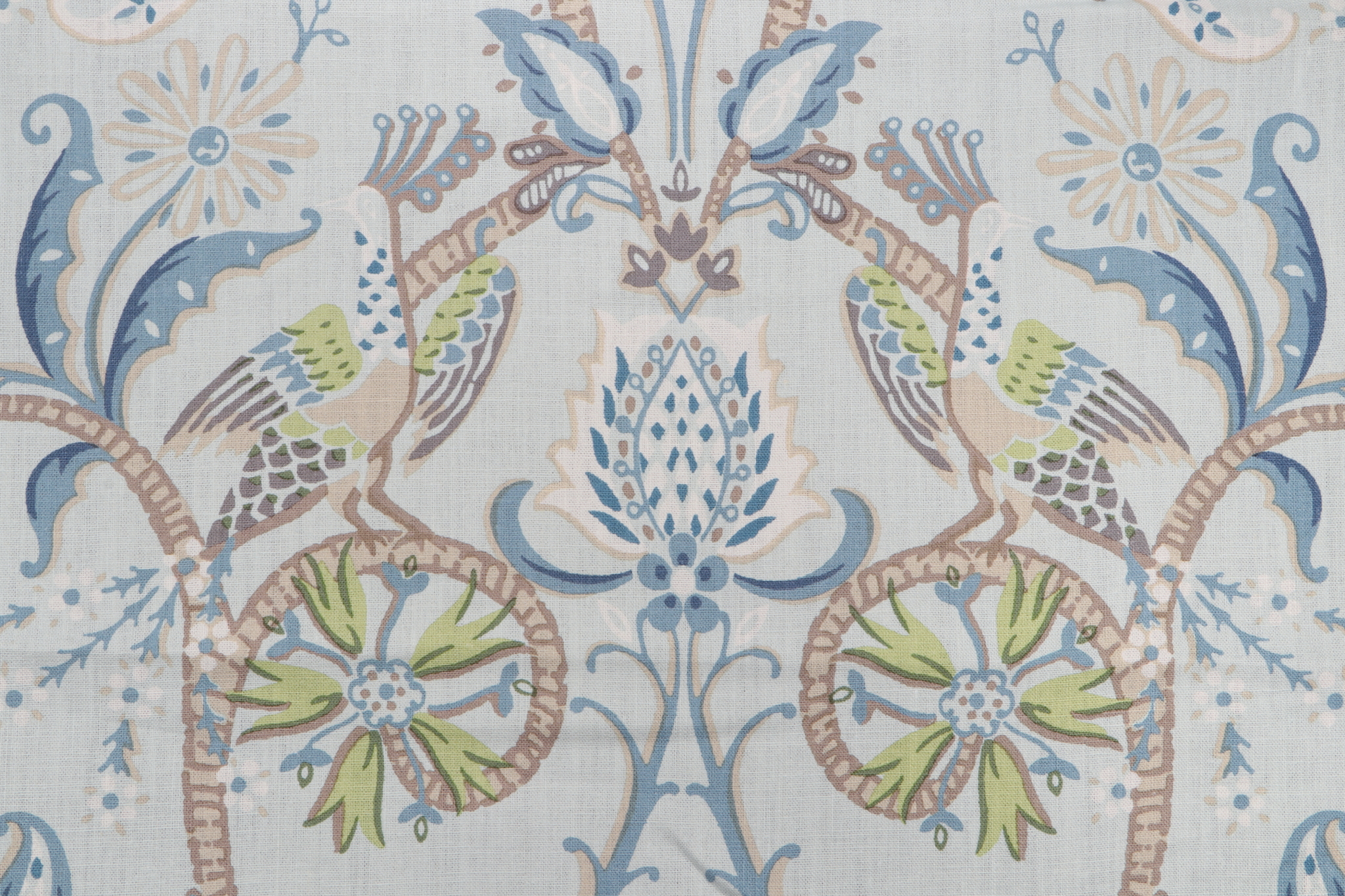 1 Yards Anna French Peacock Garden F924360 Printed Linen Drapery Fabric in Aqua for Thibaut Details