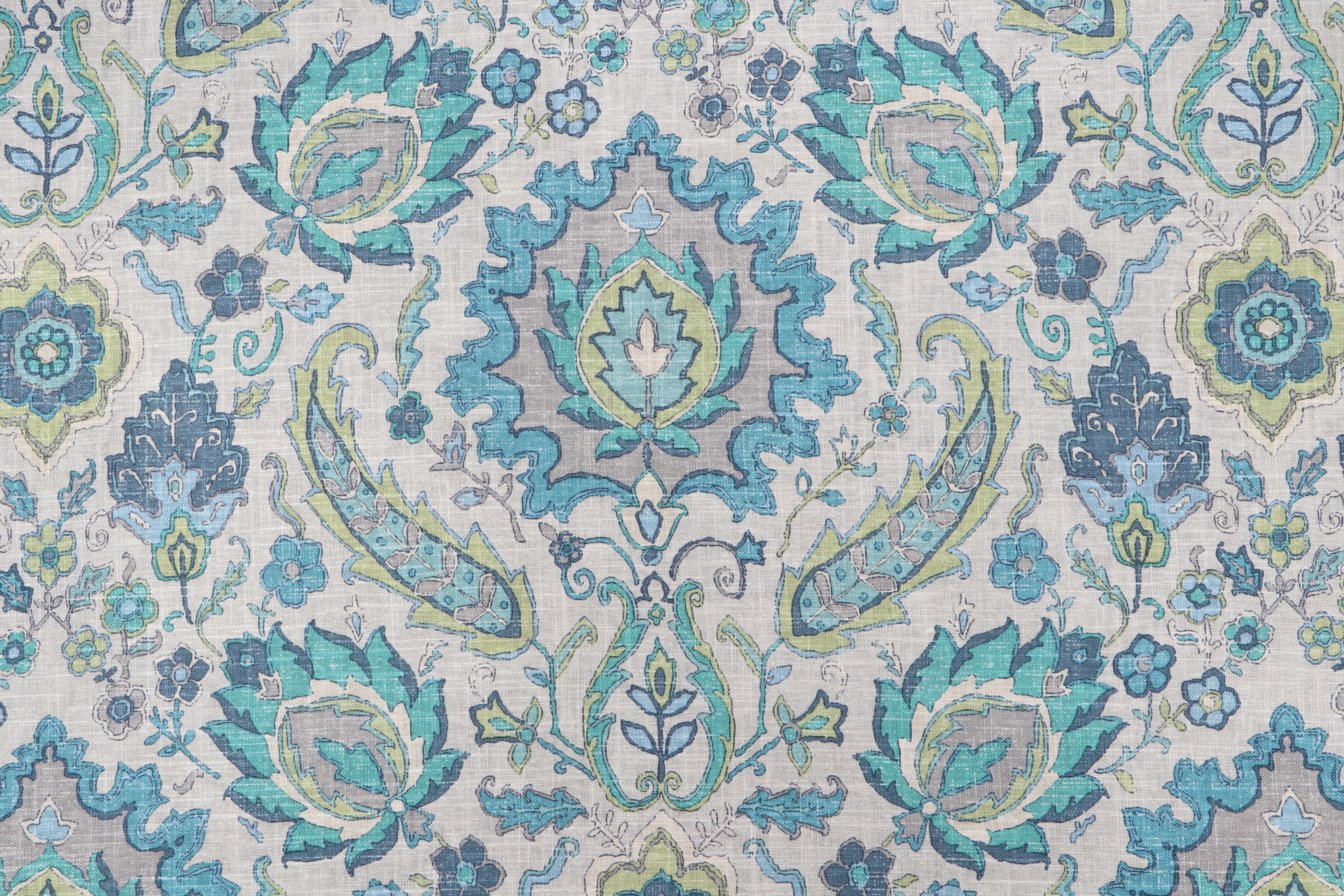 Covington Bursa Printed Linen Blend Drapery Fabric in 521-Aquamarine Details