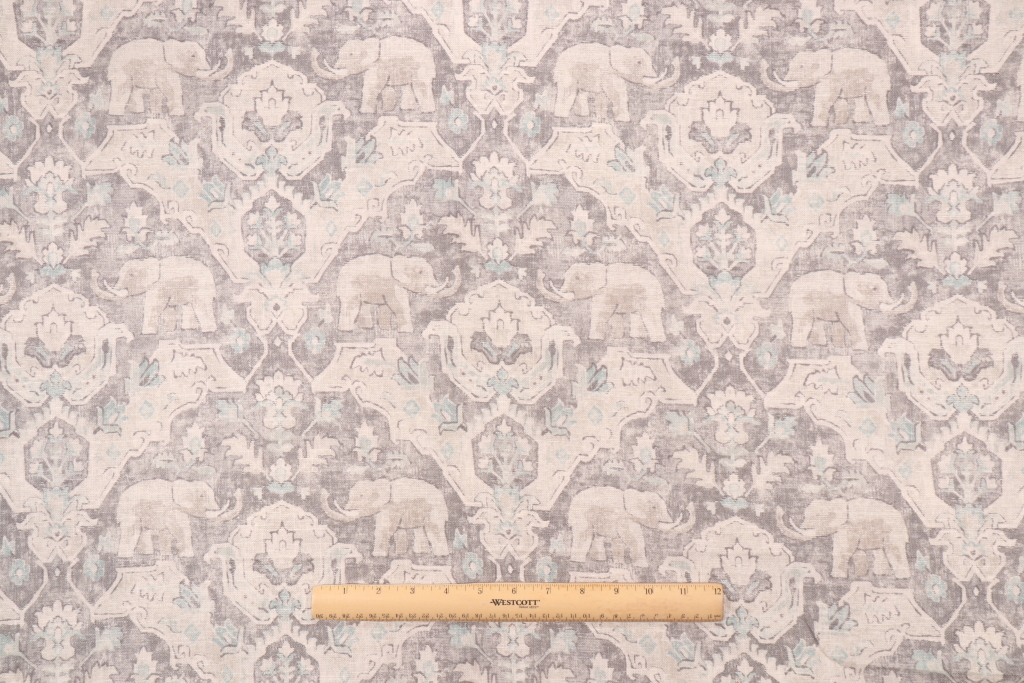 1.38 Yards Covington Loxodonta Printed Linen Blend Drapery Fabric in 908-Platinum Details