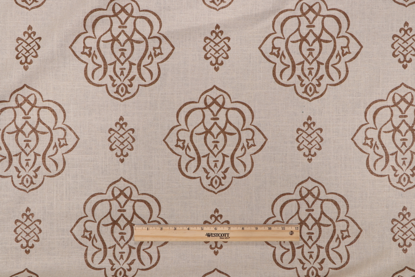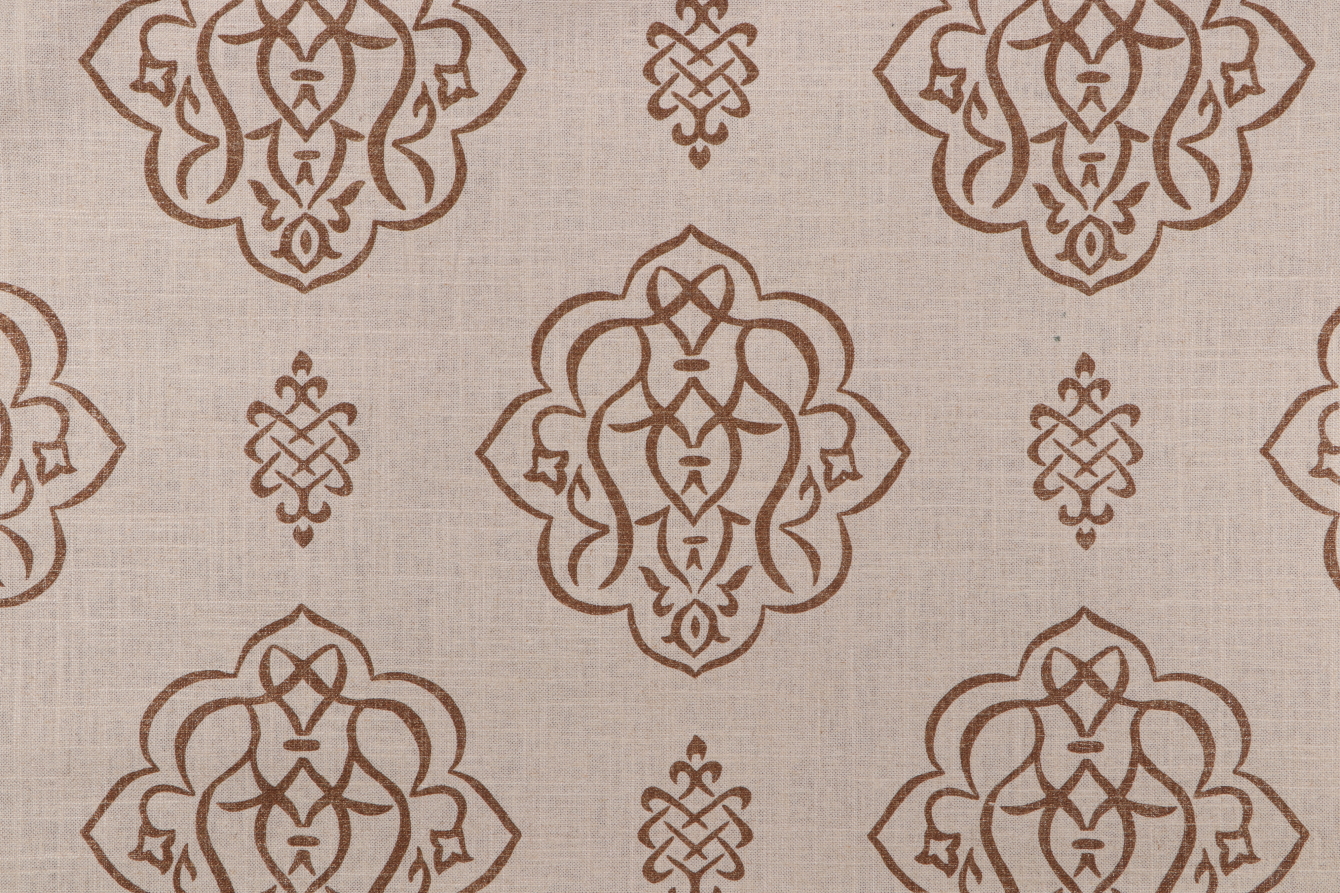 Fabricut Vern Yip Trend #4 Medallion Damask Metallic Printed Linen Drapery Fabric in Umber Details
