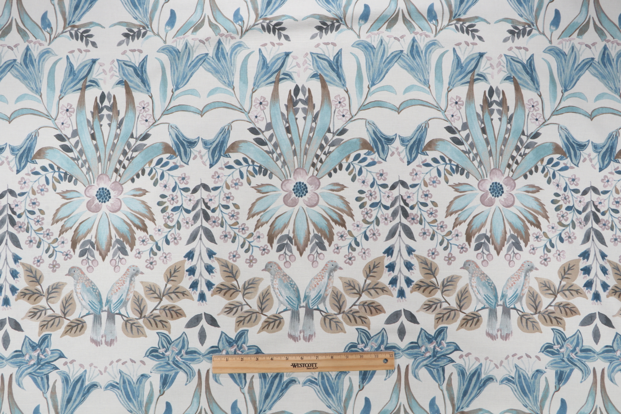 1.88 Yards P Kaufmann Lilium Printed Linen Blend Drapery Fabric in Chambray Details