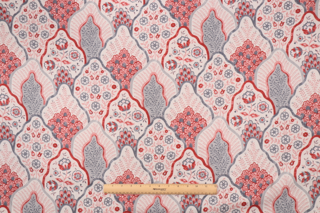 0.5 Yards P Kaufmann Natalia Printed Cotton Twill Drapery Fabric in Cranberry Details