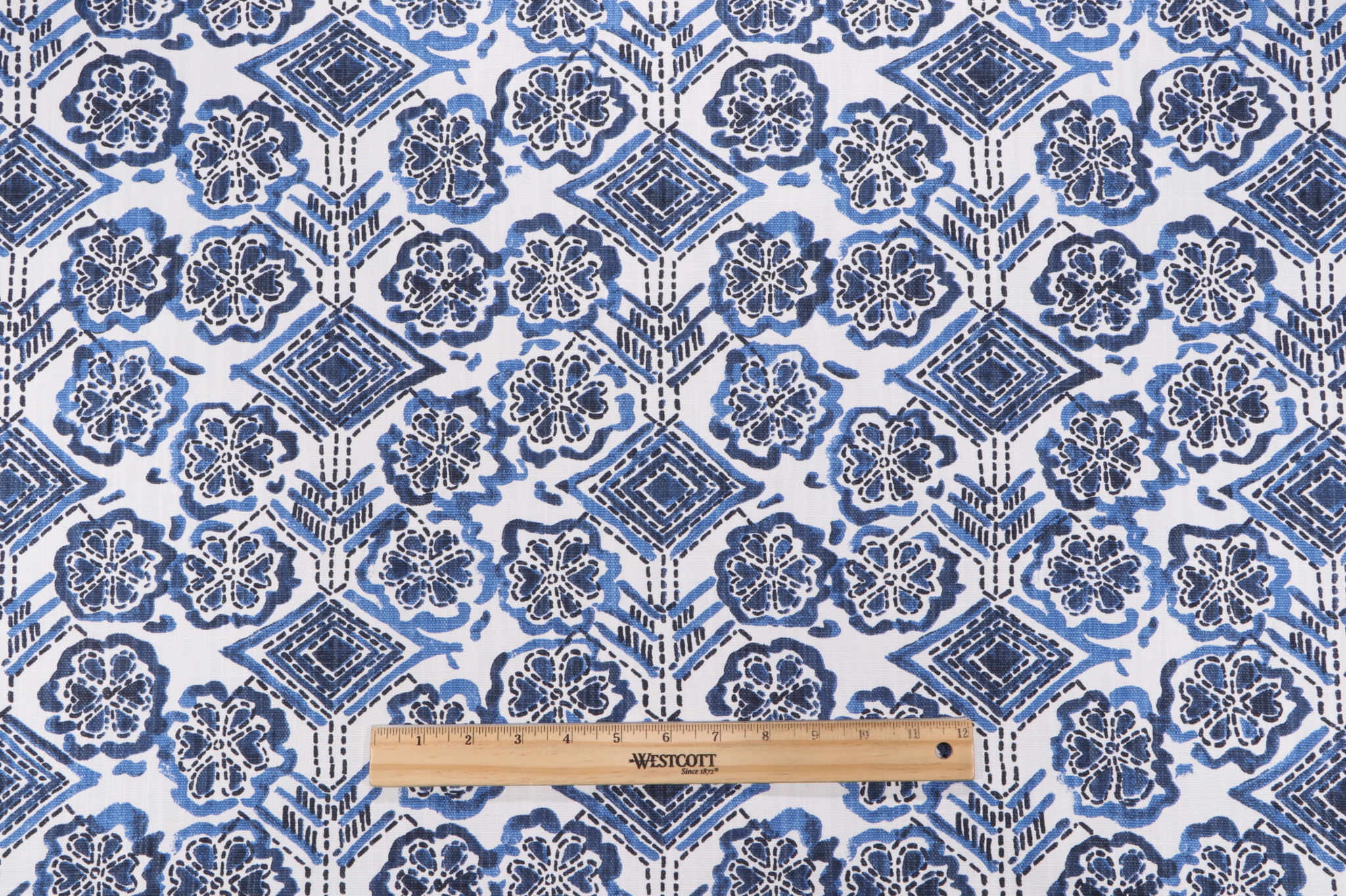 1 Yards Lacefield Brody Printed Cotton Blend Drapery Fabric in Cobalt Details
