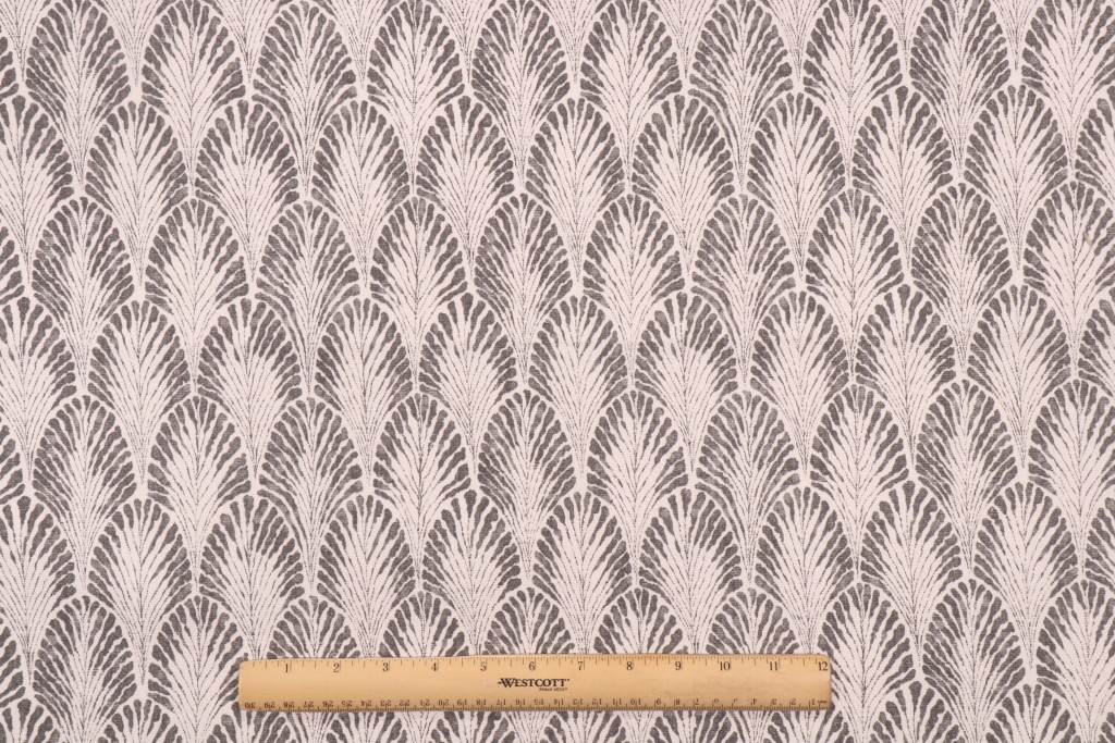 Lacefield Plume-Chatham White Printed Cotton Blend Drapery Fabric in Stone is a remnant. Fabric remnants refer to leftover pieces of fabric from production runs at manufacturing sites or pieces that remain from by the yard stock. The lengths of these remnants can vary from a few inches to several yards and are typically sold at a reduced price, since they represent remaining inventory.