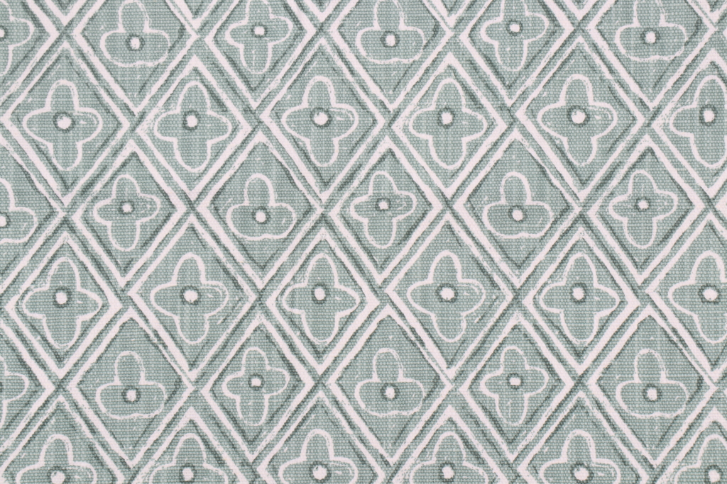 1.25 Yards Lacefield Reeva-Chatham White Printed Cotton Blend Drapery Fabric in Viridian Details