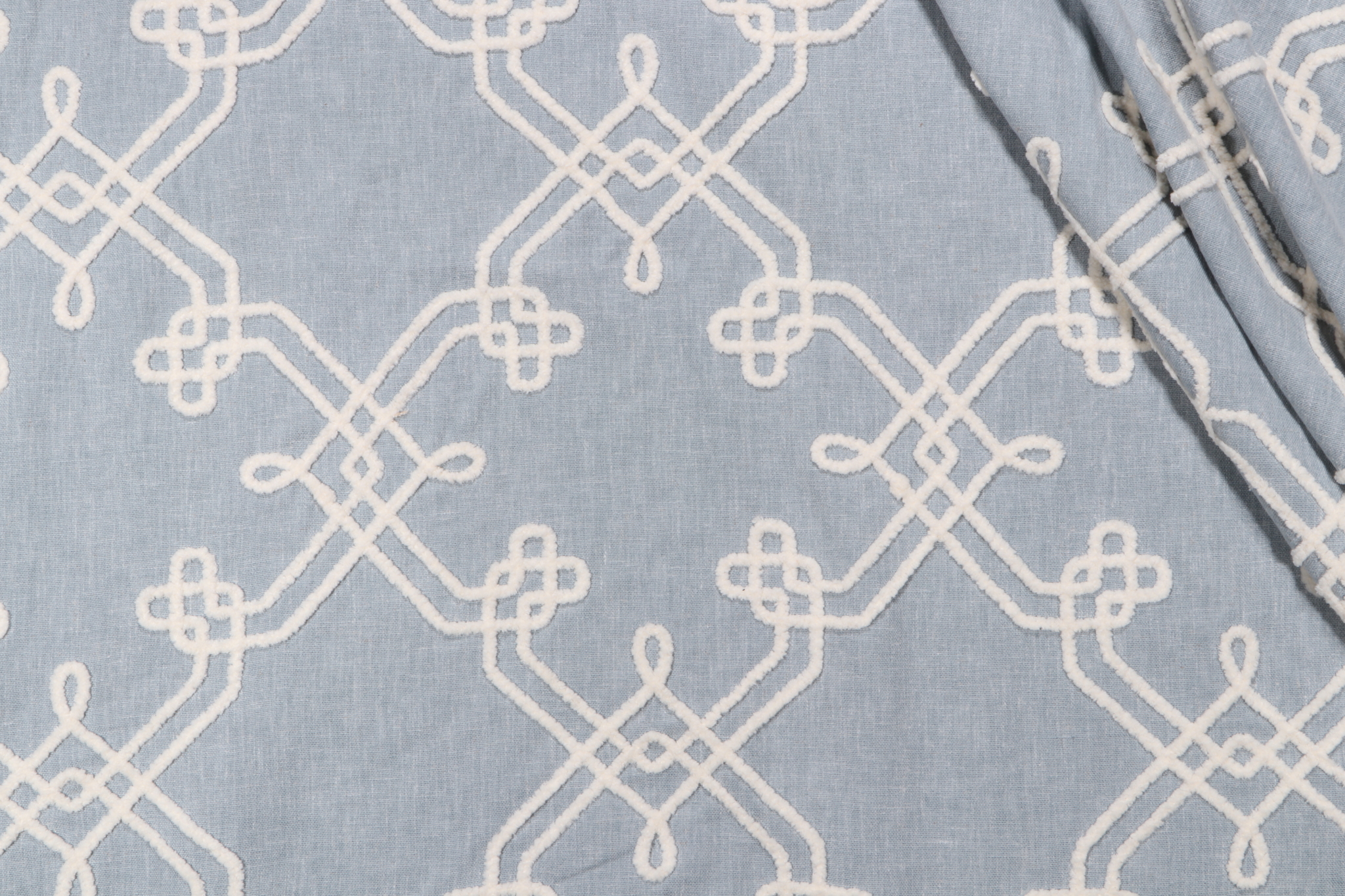PK Lifestyles Dynasty Embroidered Drapery Fabric in Chambray is a remnant, which is sold as a whole piece.