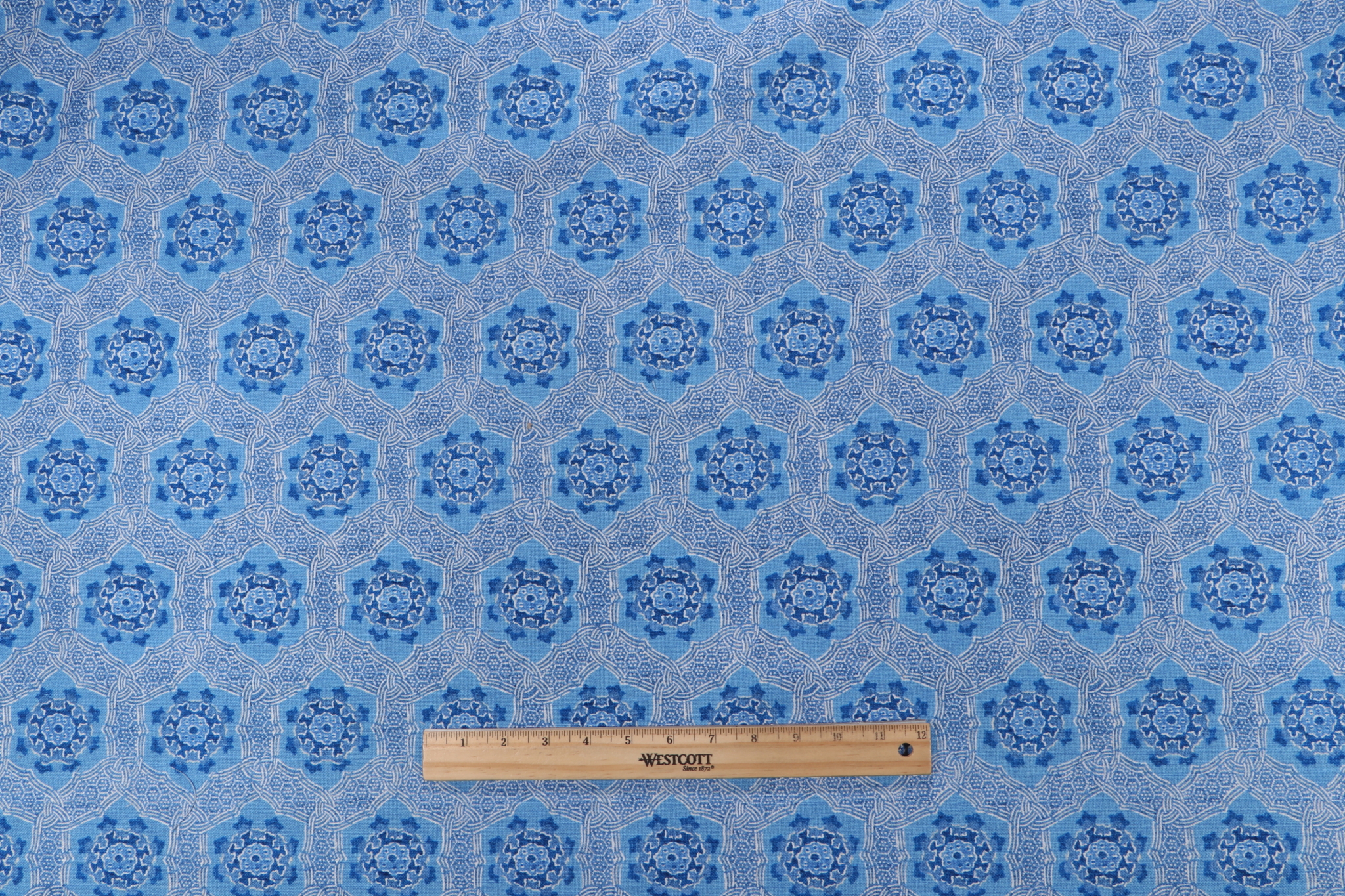 PK Lifestyles Trinket Printed Cotton Drapery Fabric in Aegean is a remnant. Fabric remnants refer to leftover pieces of fabric from production runs at manufacturing sites or pieces that remain from by the yard stock. The lengths of these remnants can vary from a few inches to several yards and are typically sold at a reduced price, since they represent remaining inventory.