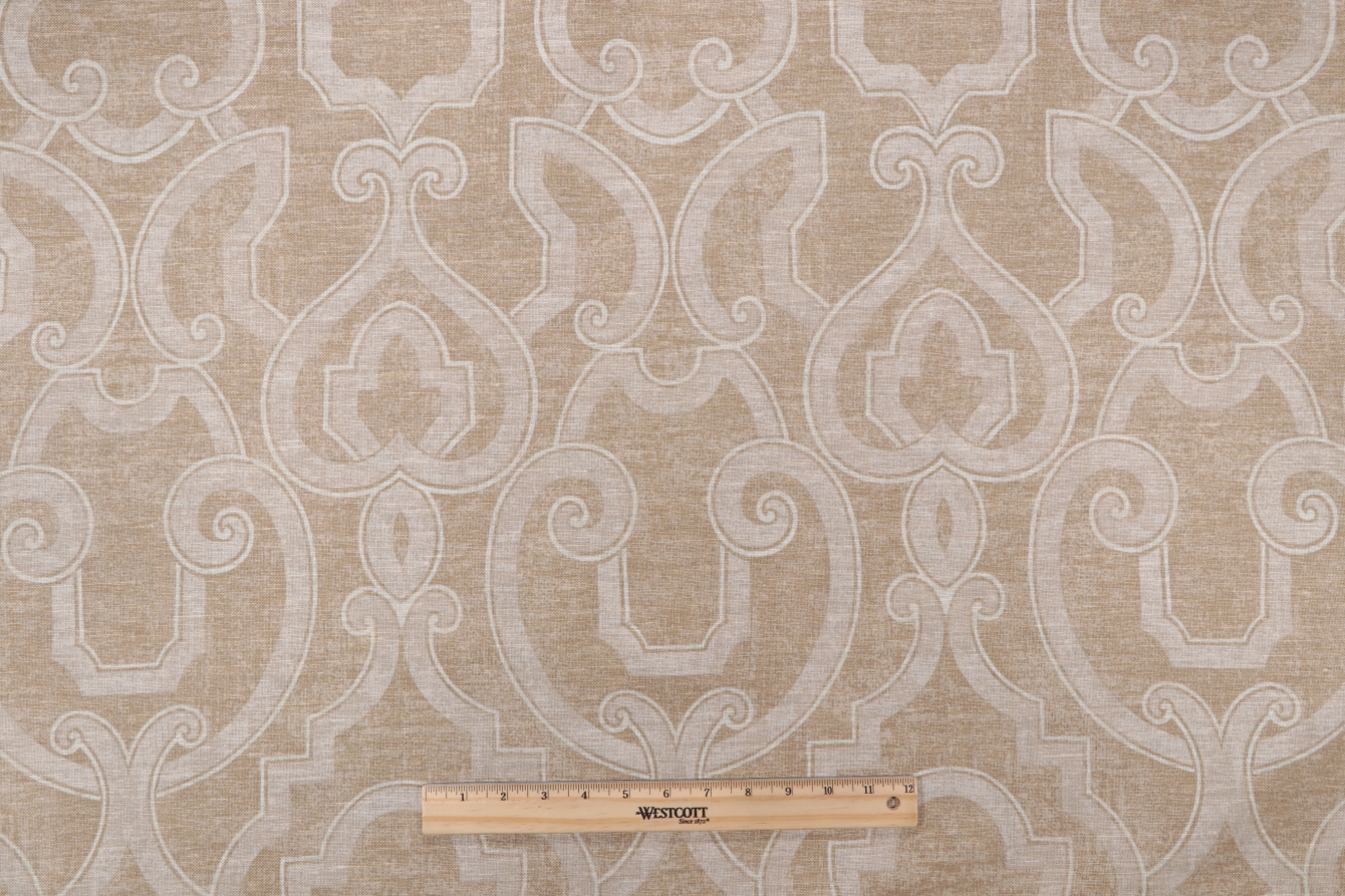 Thibaut Barrowgate Printed Linen Cotton Drapery Fabric in Beige F94716 is a remnant, which is sold as a whole piece.
