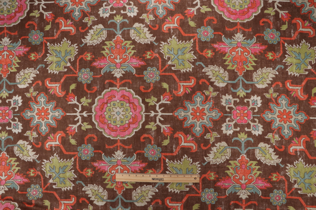 1 Yards Thibaut Mahal F964133 Printed Linen Blend Drapery Fabric in Chocolate Details