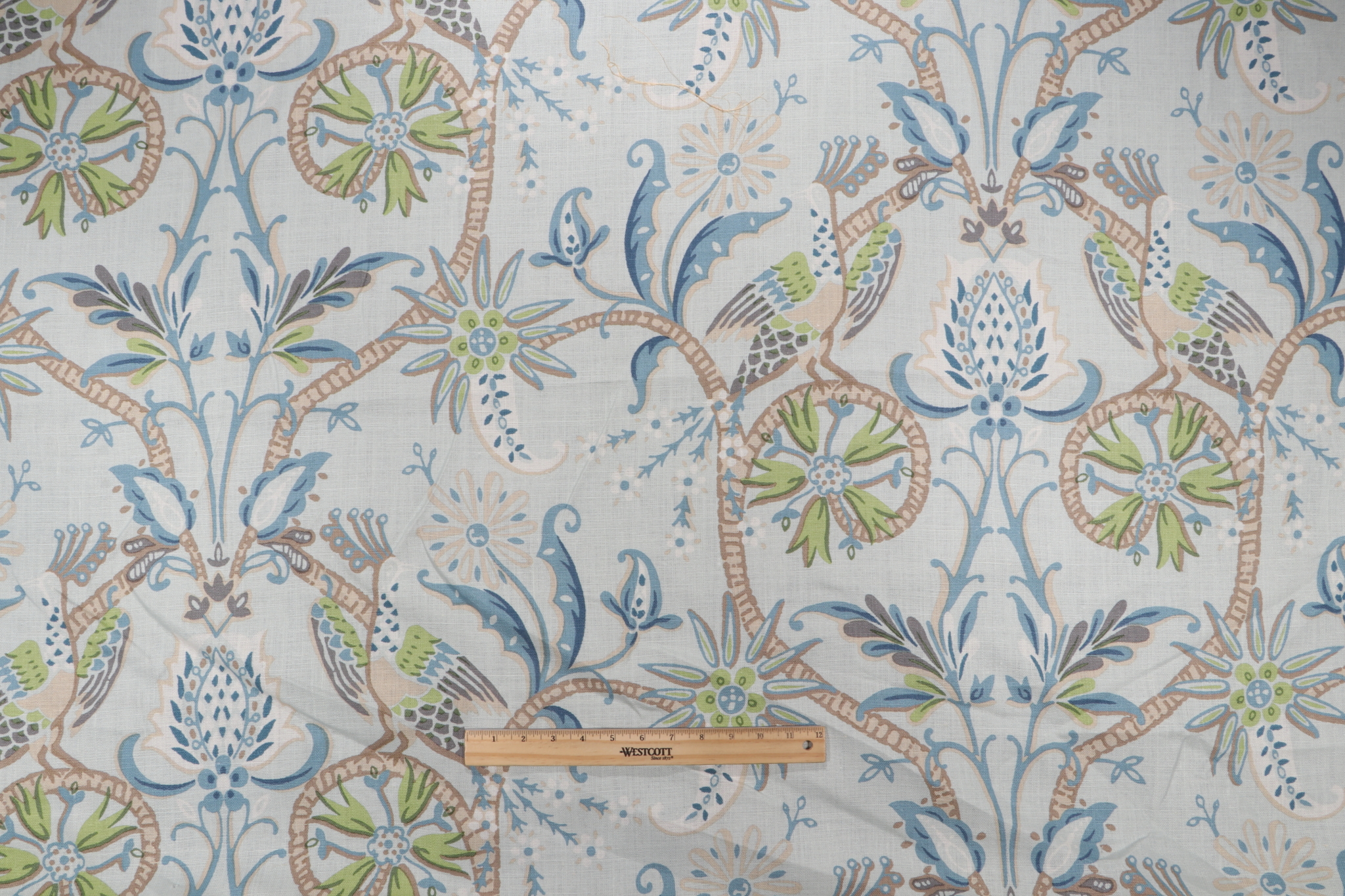 Thibaut Peacock Garden F924360 Printed Linen Drapery Fabric in Aqua is a remnant, which is sold as a whole piece.