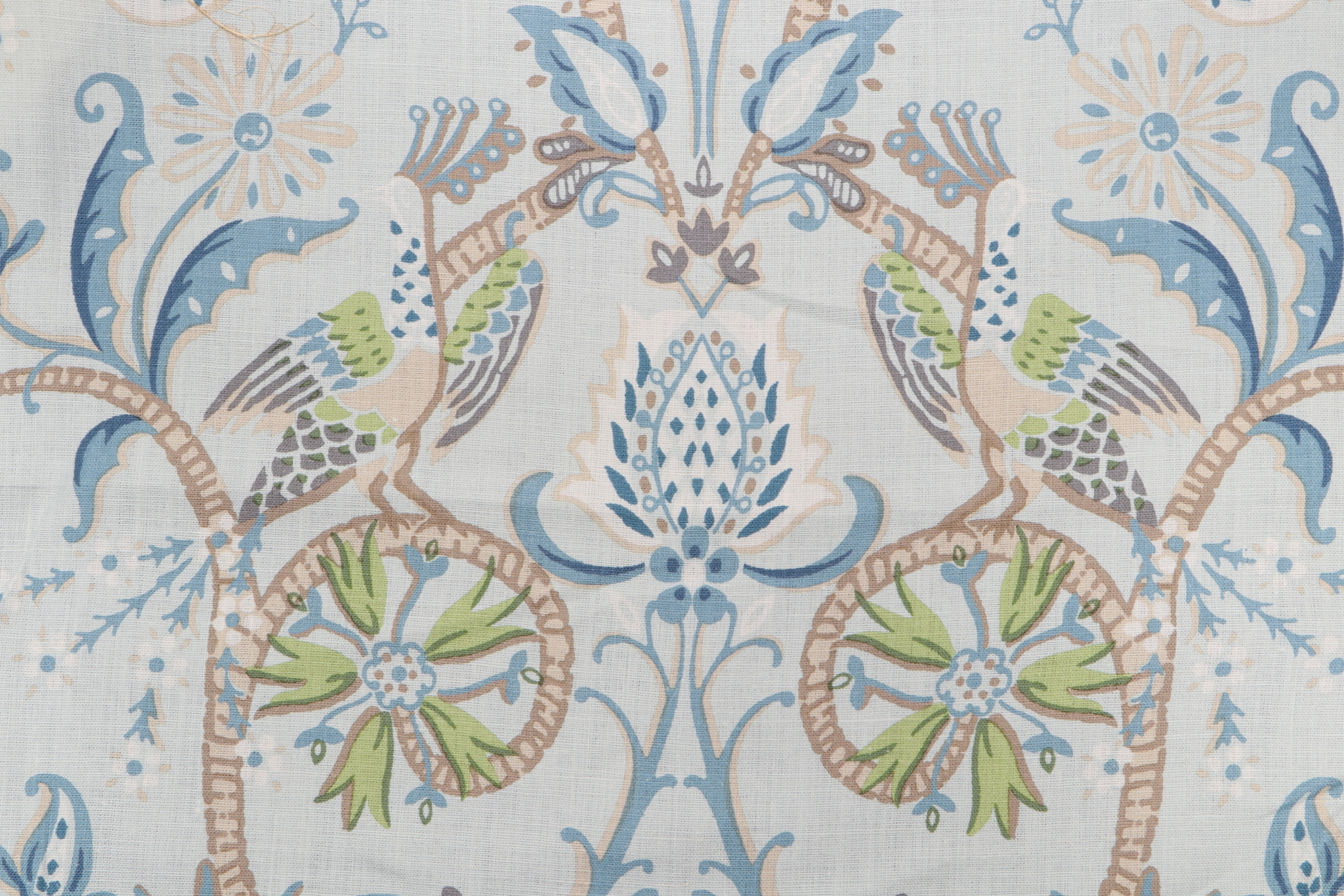 1 Yards Thibaut Peacock Garden F924360 Printed Linen Drapery Fabric in Aqua Details