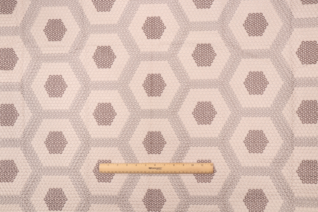 Valiant Fabrics Prism Embroidered Drapery Fabric in Natural is a remnant, which is sold as a whole piece.