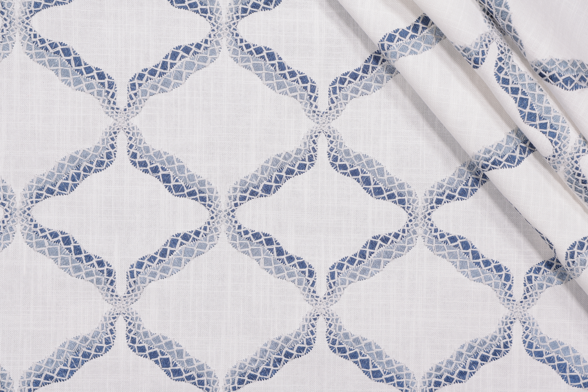 Valiant Fabrics Reign Embroidered Drapery Fabric in Nautic is a remnant. Fabric remnants refer to leftover pieces of fabric from production runs at manufacturing sites or pieces that remain from by the yard stock. The lengths of these remnants can vary from a few inches to several yards and are typically sold at a reduced price, since they represent remaining inventory.