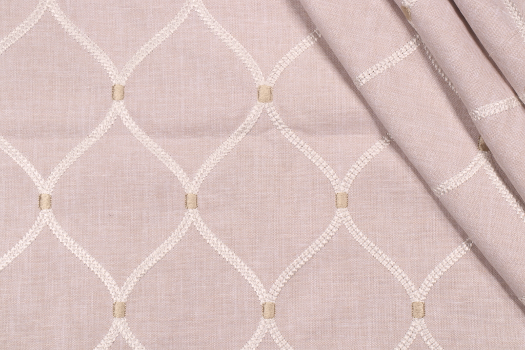 Vine Trellis Embroidered Drapery Fabric in Silver/Gold is a remnant. Fabric remnants refer to leftover pieces of fabric from production runs at manufacturing sites or pieces that remain from by the yard stock. The lengths of these remnants can vary from a few inches to several yards and are typically sold at a reduced price, since they represent remaining inventory.