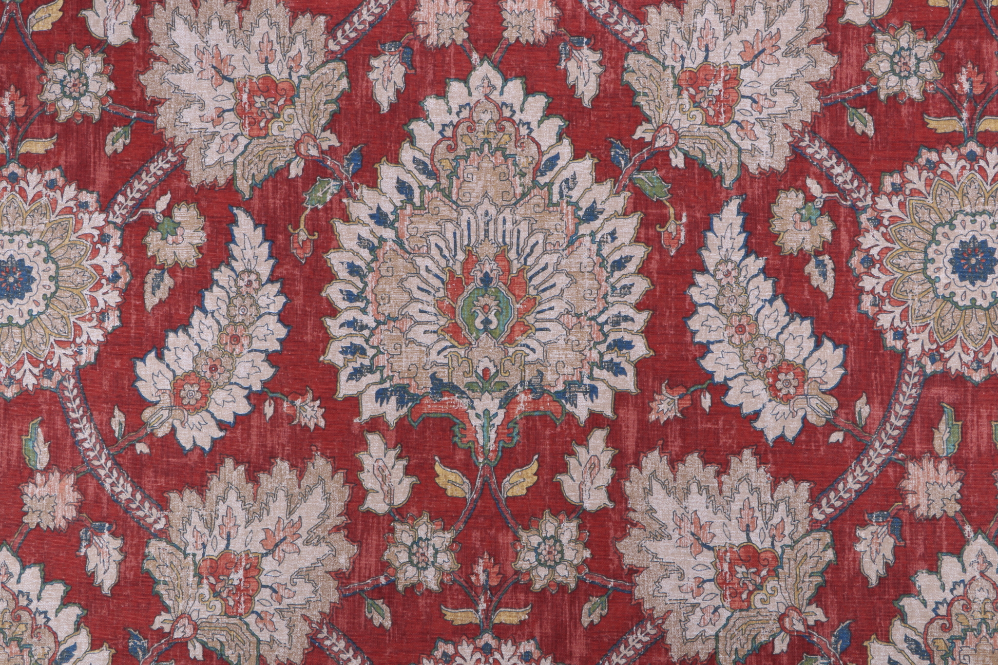 2.5 Yards Waverly Castleford Printed Cotton Drapery Fabric in Garnet Details