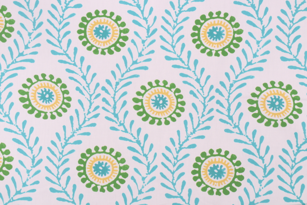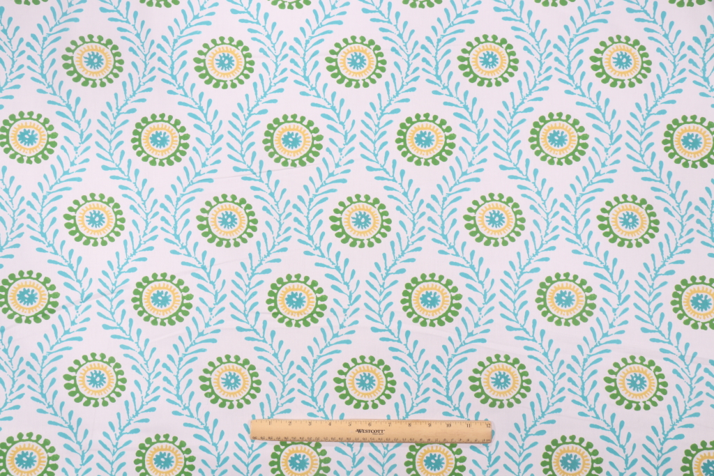 Waverly Fresh Spin Printed Cotton Drapery Fabric in Turquoise is a remnant, which is sold as a whole piece.