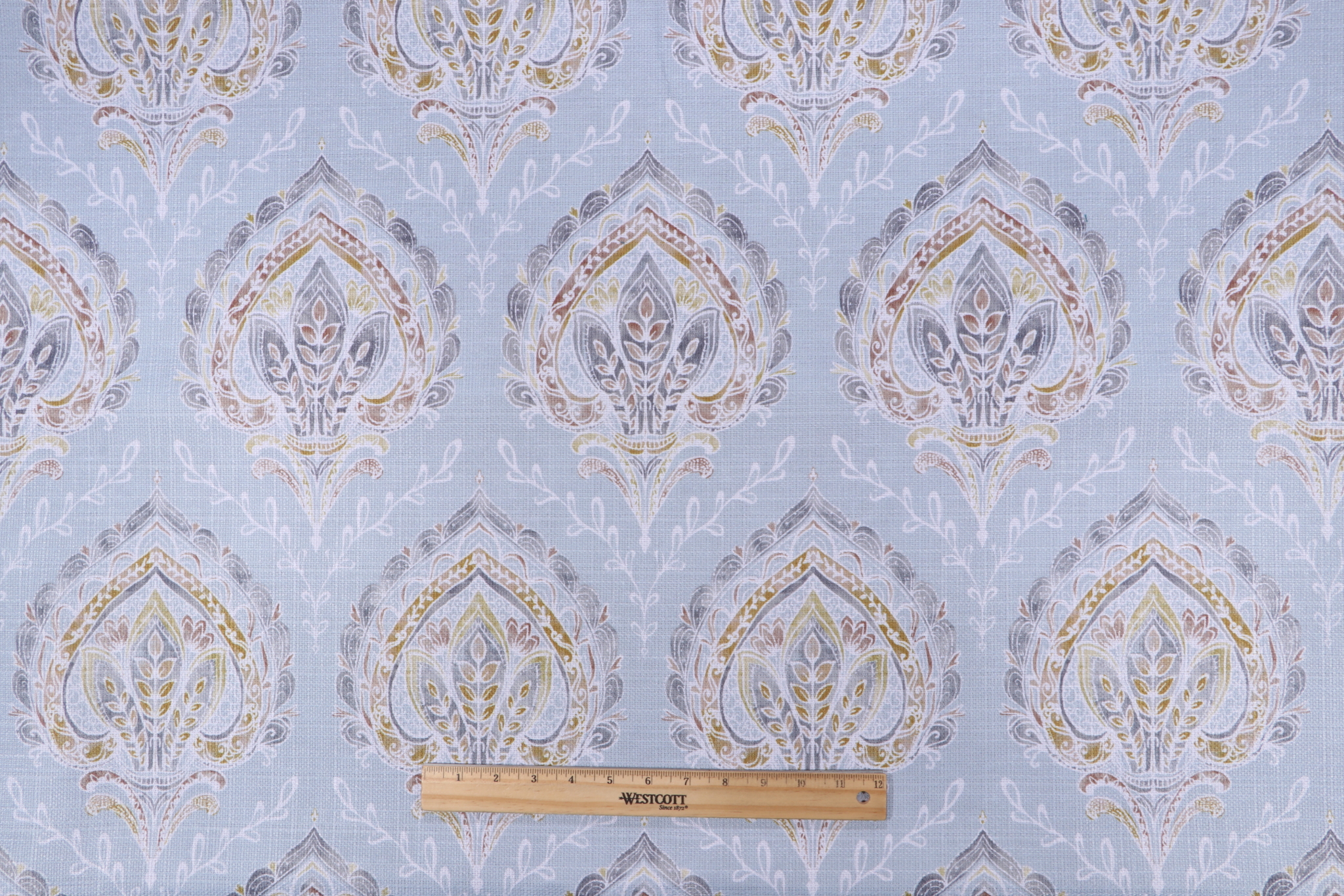 Available now: 3 yards of Indira, a premium printed high performance decorator fabric by Crypton. Best for small projects such as decorative pillows, framed fabric art, or trim details on draperies. Note: If you are unsure about the suitability of this fabric for your specific use case please contact us prior to ordering.