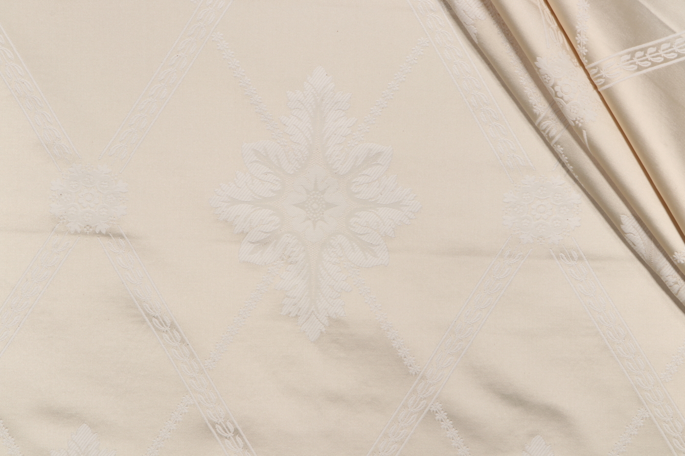 4.75 Yards Gibbs Damask Decorator Fabric in Ivory Details