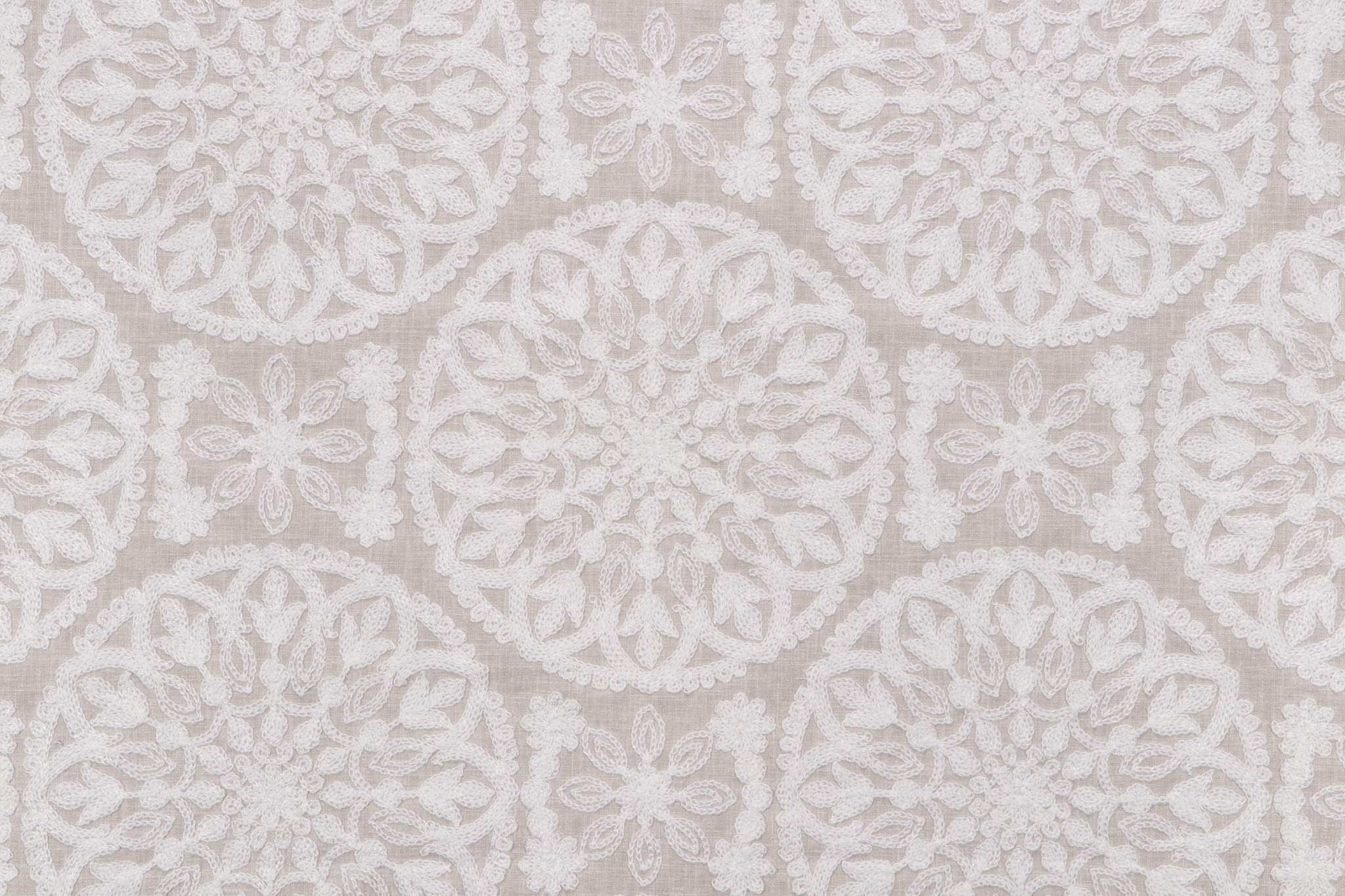 PK Lifestyles Lace Medallion Embroidered Decorator Fabric in Cloud Details