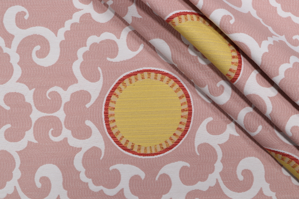 Sun Spotted Woven Upholstery Fabric in Coral Details