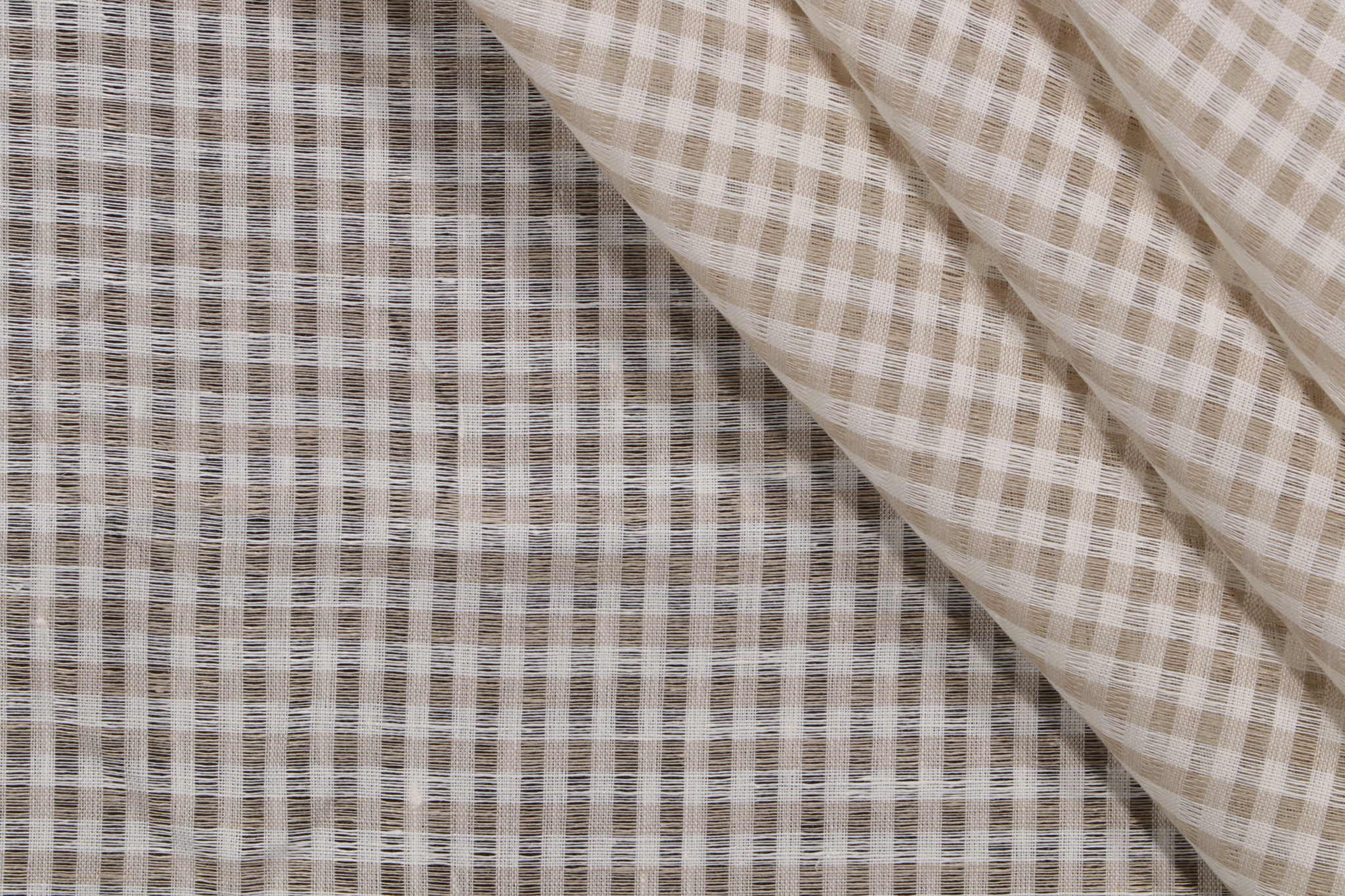 Fonthill Stockholm Sheer Drapery Fabric in Medium Beige for Scalamandre is a remnant. Fabric remnants refer to leftover pieces of fabric from production runs at manufacturing sites or pieces that remain from by the yard stock. The lengths of these remnants can vary from a few inches to several yards and are typically sold at a reduced price, since they represent remaining inventory.