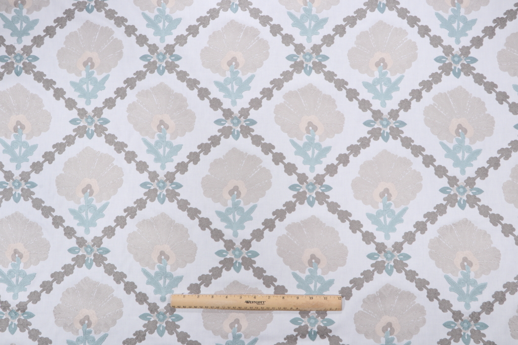 PK Lifestyles Grand Fleur Crewel Embroidered Drapery Fabric in Mist Details