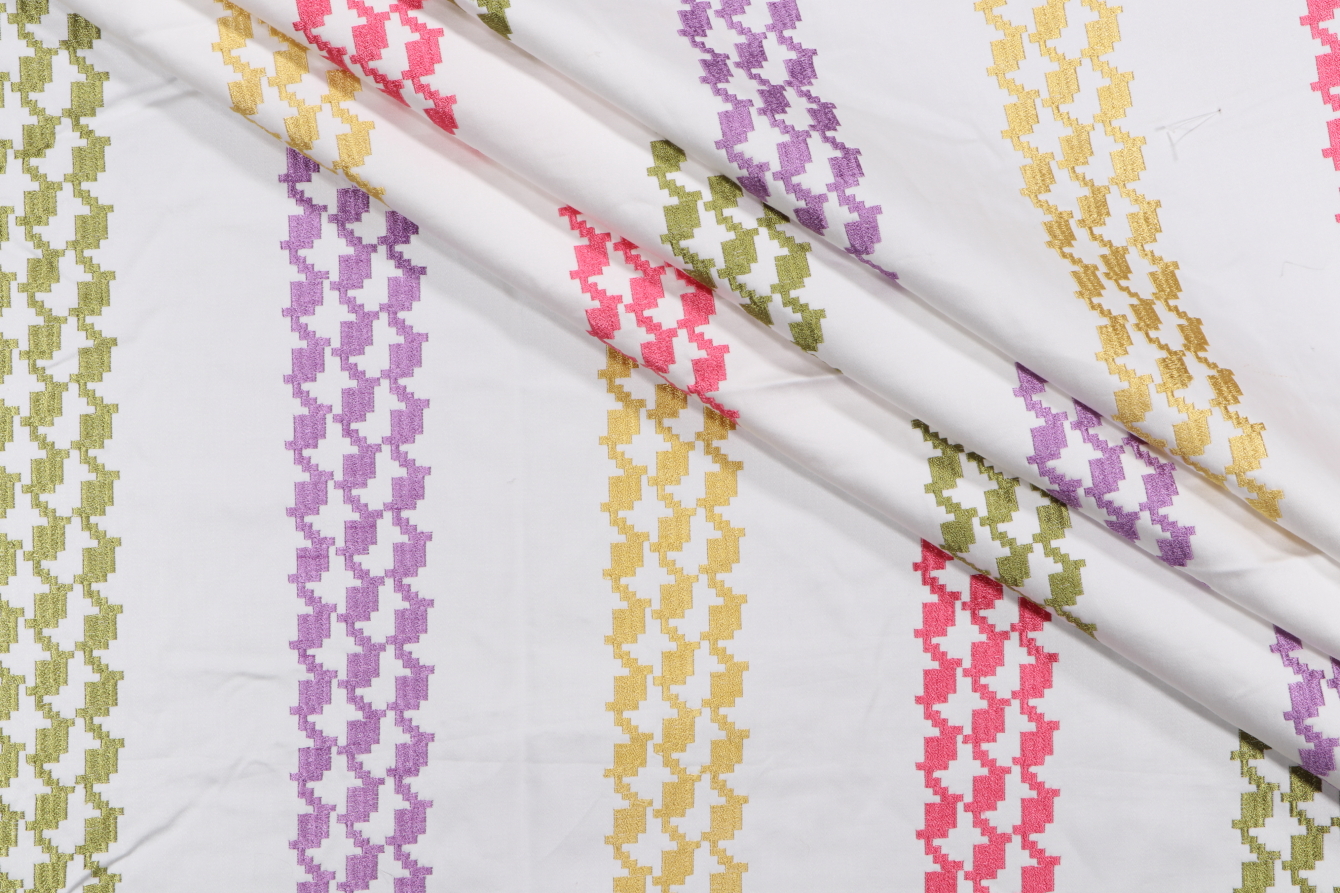 Aldeco Graceline Embroidered Drapery Fabric in Colorfulness for Scalamandre is a remnant, which is sold as a whole piece.