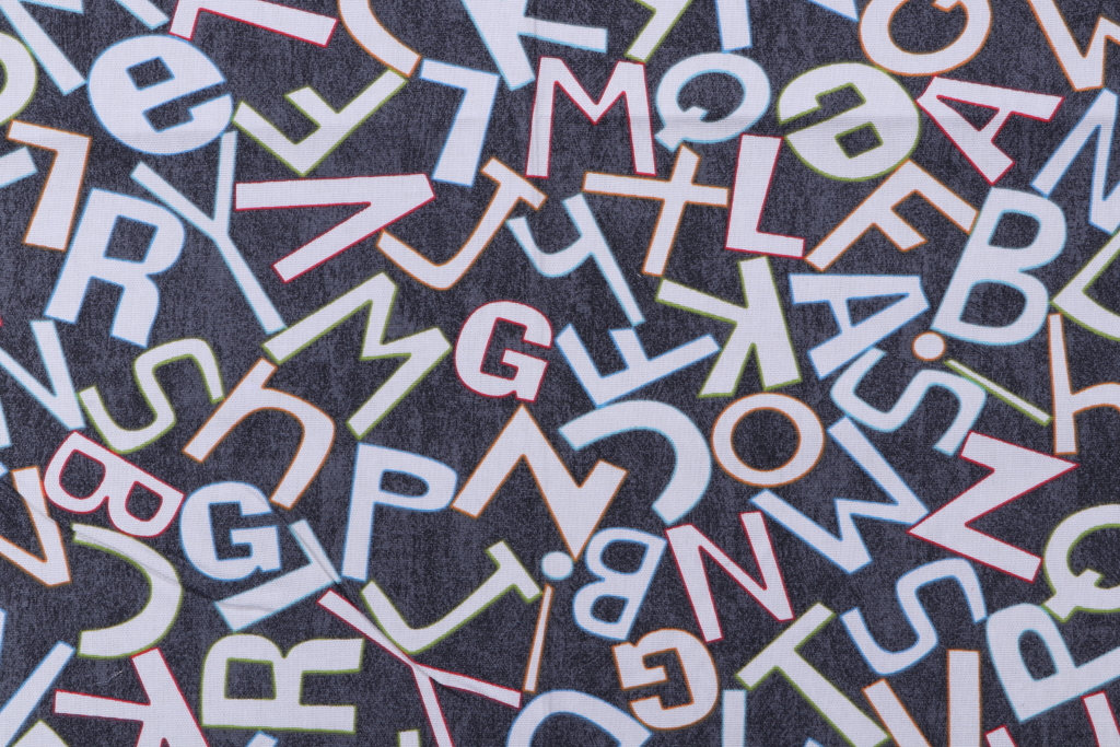 Waverly Alphabets Printed Cotton Drapery Fabric in Noir is a remnant, which is sold as a whole piece.